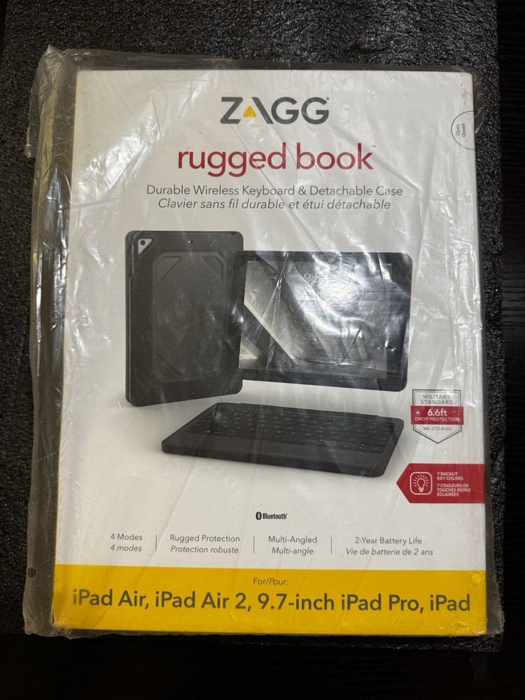 The ZAGG A97RGK-BB0 Rugged Book and Keyboard is a keyboard folio case designed specifically for Apple iPad models, including the 5th, 4th, 1st, 6th, 2nd, and 3rd generations. It features a sleek black color and is made from durable silicone, gel, and rubber materials to provide impact resistance. The keyboard folio case also includes a magnetic closure for easy attach and detach functionality, making it both practical and stylish for on-the-go use with your iPad Pro. PAYMENT / SHIPPING / RETURNS We only accept payment through PayPal with eBay checkout; we do not accept private offers outside of eBay. Payment is due within 8 business days of the date your auction ends or, if applicable, your invoice date. Any special arrangements need to be made before you pay. We only allow bidding from users with registered PayPal addresses and physical locations in the continental United States. Our hours of operation are Monday-Friday, 7am-3pm PT. We answer and ship during business hours. We do not ship on weekends. We ship within one business day of cleared payment and will only ship to registered PayPal addresses and physical locations in the continental United States. We strive for excellent customer service and delivering quality products. Please do not open a case in the resolution center before contacting us first. We would like to address any problems even though we do not offer refunds/ unless there are specific circumstances. Before leaving us negative or neutral feedback or less than a 5-Star DSR rating, please give us the opportunity to make things right or let us know what we can do to improve. We leave positive feedback for all customers THE techXchange GUARANTEE Customer satisfaction is extremely important to us. Each item will be shipped within TWO BUSINESS days. Your questions are important to us and will be returned within 1 business day. Please do not hesitate in contacting us. We are more than happy to assist. This item has been extensively tested to ensure full functionality when it arrives.