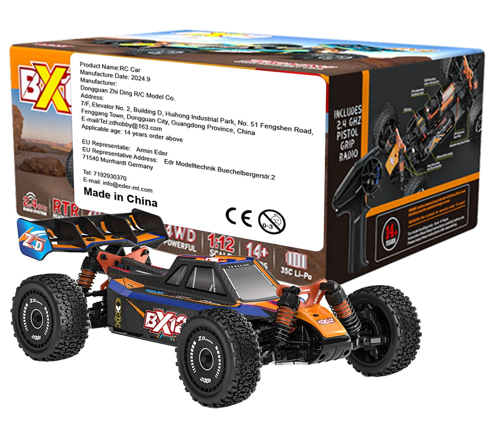 JJRC 1/10 C8815 RC Jeep 4WD Military Truck Off-Road RTR RC Car Climbing Vehicle 64.29 USD Free shipping Wltoys 284131 1/28 2.4G 4WD Short Course Drift RC Car Vehicle Kids Toys pk K989 57.59 USD Free shipping AUSTARHOBBY AX-8560 RC Car RTR 2.4Ghz 1/18 4WD All Terrains Off-Road Crawler Car 78.79 USD Free shipping Wltoys 284161 Off Road RC Car Mini 1/28 RC Rally Car RC Drift Remote Control Car 63.72 USD Free shipping Wltoys 284161 Off Road RC Car 1/28 30km/h Remote Control Vehicle Christmas gift 60.84 USD Free shipping JJRC C8815 4WD RC Jeep 2.4G Off Road 50M Light Remote Controler Climbing Vehicle 8.94 USD Free shipping AUSTAR 1/18 RC Car 4X4 4WD RTR Off-road 2.4G Remote Control Rock Crawler Vehicle 82.24 USD Free shipping 1/64 Mini RC Truck 2.4G Off-road Monster Truck Mini Alloy Model Climbing RC Car 15.99 USD Free shipping AUSTARHOBBY AX-8562 1/18 RC Crawler Car RTR 4WD Rock Remote Control Off-Road Car 81.24 USD Free shipping AUSTARHOBBY AX-8504 RC Car 1/10 4WD 2.4G Crawler with Tube Roller Cage Toys 195.94 USD Free shipping Austar AX-X6 1/10 RC Car Rock Crawler 6x6 1/10 Scale 30KM/H 2.4Ghz RC Truck 520.84 USD Free shipping ZD Racing 1/16 RC Car 4WD Brushless 2.4G 4CH Remote Control Off-Road Truck 80mph 140.79 USD Free shipping Wltoys XK 2428 4WD 1/24 RC Crawler Car 2.4G Off-Road RTR Climbing Vehicles Truck 95.9 USD 106.61 USD Free shipping 10% off 9imod 1:16 RC Car Off Road Truck High Speed 2.4G Remote Control RTR Racing Cars 24.9 USD Free shipping AUSTARHOBBY RC Car 4WD 1/18 SUV Off-Road Crawler RTR 2.4Ghz Remote Control Car 82.79 USD Free shipping AUSTAR 1/18 RC Car 4x4 4WD Off Road Crawler RTR 2.4G Remote Control Climbing Car 73.33 USD Free shipping AUSTARHOBBY AX-8509 1/10 Cherokee RC Car 4WD 2.4Ghz RTR RC Truck Model Toys 402.88 USD Free shipping Wltoys K989 RC Car 1:28 4WD Drive Off-road 2.4G RC Alloy Chassis 30km High-speed 65.46 USD Free shipping WLtoys 124017-V8 1:12 Brushless High Speed 75KM/H RC Car 4WD RTR RC Drift Truck 148.49 USD Free shipping Wltoys K969 RC Car 1:28 Four-wheel 4WD Off-road 2.4G 30km Kids Children Toys 71.27 USD Free shipping AUSTARHOBBY RC Car 4x4 4WD 1:18 Off Road Crawler 2.4G RTR Remote Control Truck 72.48 USD Free shipping WLtoys XK 124010 RC Racing Car 55KM/H 2.4G High Speed Drift 1/12 4WD RTR Trucks 115.84 USD Free shipping Wltoys 284010 Mini 1/28 RC Rally Car 30km/h 4WD 2.4G RC Drift car Vehicle 61.49 USD 68.32 USD Free shipping 10% off Wltoys 284131 1/28 2.4G 4WD Short Course Drift RC Car RTR 30KM/H Remote Control 56.59 USD Free shipping ZD Racing RC Car BX-12 Brushless 1/12 2.4GHz RTR 70KM/H High Speed Electric Remote Control Racing Buggy Vehicle Adult Children's Toys Features: 1. Lightweight structure, competition-level materials. 2. Aluminum alloy chassis, front and rear cross-cutting upper and lower double-layer support, greatly enhancing the body structure. 3. Configuration of narrow front and wide rear all-terrain race tires, equipped with spoiler tail, more smooth speed. 4. The whole car adopts high-precision bearings, running smoothly and infinitely smooth. 5. Aggressive all-terrain tires, natural rubber tread, newly designed tread pattern with super grip, easy to deal with any site. 6. Powerful drivetrain: all-metal differential with damping, overload limited-slip set CNC steel ruler, steel CVD drive shafts. 7. Strong suspension system with front and rear anti-sway bar design, which greatly improves the playability of the whole car's handling. 8. 2845 brushless motor 3600KV CNC aluminum alloy sliding adjustable motor mountAluminum alloy independent heat sink. 9. 35A independent brushless ESC,With high-speed fan,XT60 connector starts smoothly,responds quickly, supports high-speed and stable operation. Description: ZD RACING BX-12 Brushless 1/12 RC Car ,Designed for extreme speed, front and rear anti-sway bar design, which greatly improves the playability of the whole car's handling.2845 brushless 3600KV motor,CNC aluminum alloy sliding adjustable motor mount Aluminum alloy independent heat sink,strong backup capacity more stable power output. bring you a new visual feast,a new sense of control. Specifications: Model Name1:12th scale Buggy Color: Blue / Orange Drive: 4WD Remote controller: 2.4GHZ Channel: 4 RC distance: 180M Speed: 70km/h Gear ratio: 8.7:1 Motor Rocket: 2845 Brushless 3600KV ESC: 35A (3S) brushless ESC Battery compartment size: 114x35MM Battery: 11.1V 35C (3S) Li-Po battery 2200mAh Servo: 2.2KG fully waterproof metal gear servo Base plate: 2MM aluminum alloy base plate T6061 Shock Tower: 3MM aluminum alloy T6061 Chassis Height: 35mm Shock absorber: Metal long & Hydraulic stroke Ф16*70mm Reduction gear: 59T high carbon steel reduction gear with overload limited slip protection Motor base: Sliding adjustable motor mounting bracket F/R Differ: 2W# silicone oil damped planetary gear differential Wheels Tires Front: Ф75*28mm/RearФ75*33mm Upper pull rod: Adjustable length steel pull rod Color box size: 320*215*145mm Net weight: 1.3kg Package contents: 1*Car 1*Instruction manual 1*Remote Control 1*USB charger 1*Battery(as you choose Note: Only the above package content, other products are not included. 1.Due to the difference between different monitors,the picture may not reflect the actual color of the item. We guarantee the style is the same as shown in the pictures. 2.Due to the manual measurement and different measurement methods, please allow 1-3mm deviation.Thanks! Before purchase: 1.All the goods are ready stock, we will arrange the shipment at once if we receive the order. 2.Please read the item description, if you have any question, do not hesitate to contact us. 3.No warranty,if you receive a defect item,please contact us at once with item picture. 4.Use the vouchers for more saving. After purchase: 1.If you are satisfied,please express your use feeling. 2.Please contact us before you are going to give us bad review. We are helpful and will solve the problems. If you receive a defect item,please contact us at once with