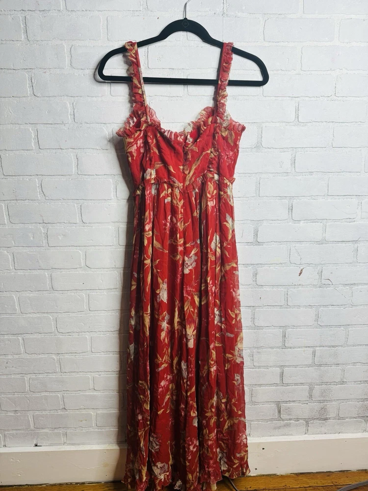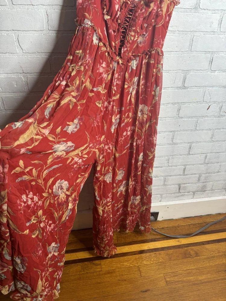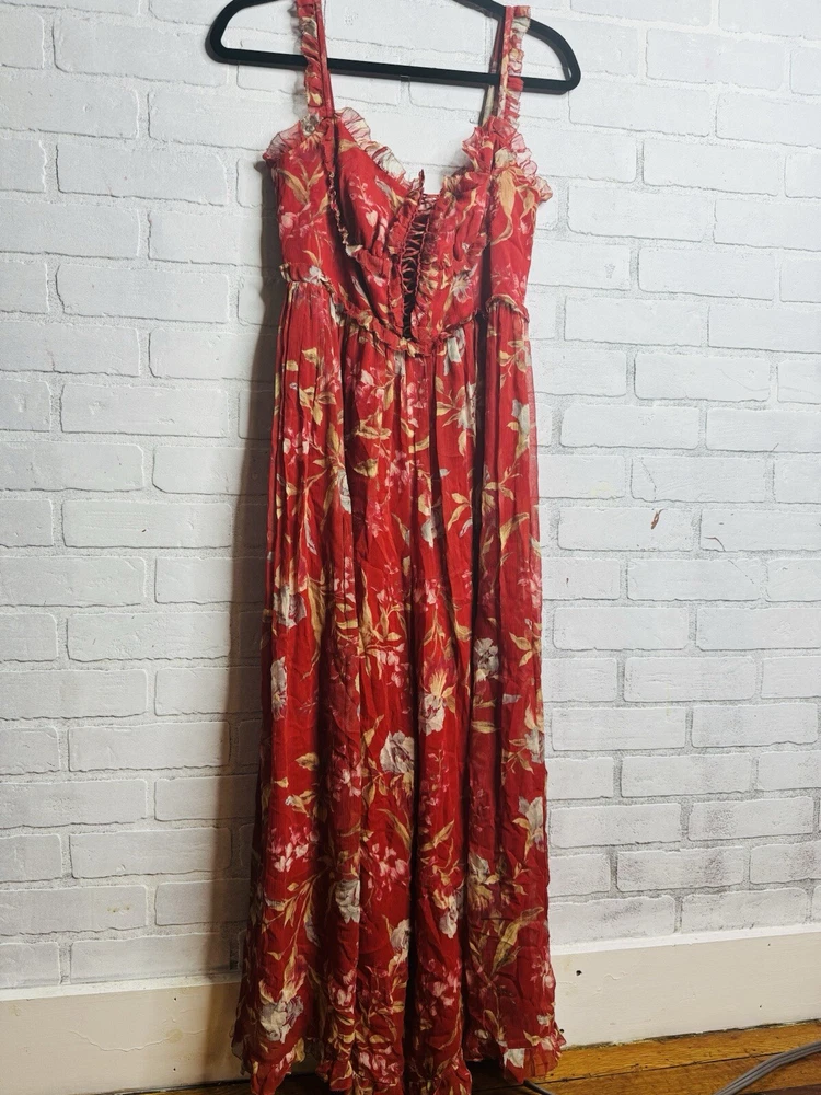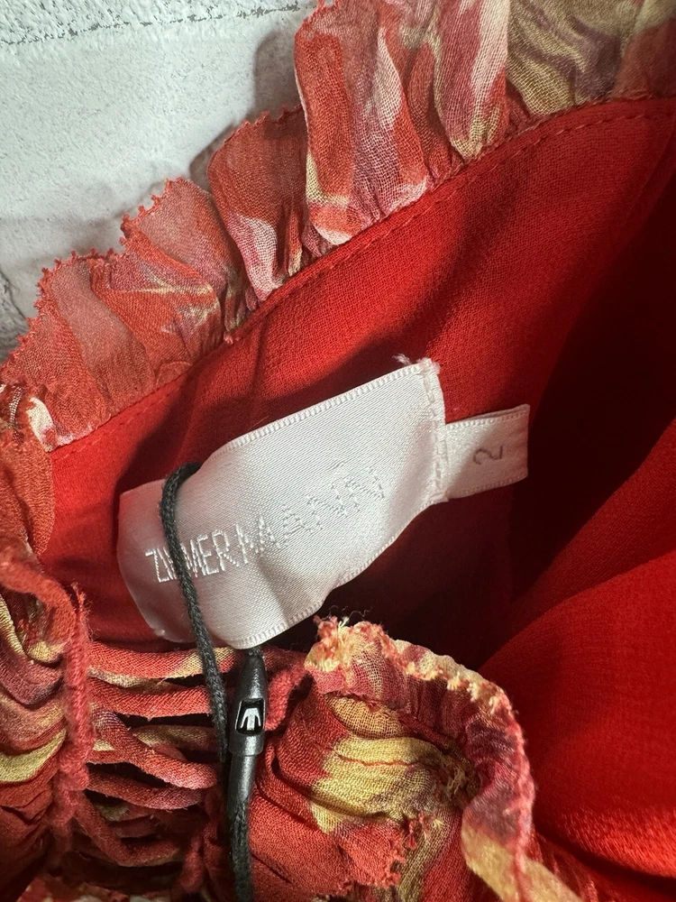 Embrace the beauty of nature with this stunning Zimmermann silk jumpsuit dress. The dress features a vibrant floral print that is sure to turn heads. The overall dress style is perfect for any occasion and is designed to flatter your figure. The long dress length adds an elegant touch to the look. Made with high-quality silk material, this dress is comfortable to wear and luxurious. The dress is available in size 2 and is suitable for regular size types. The multicolor design is perfect for women who love to add a pop of color to their wardrobe. This dress is a must-have for any fashion-forward woman.
