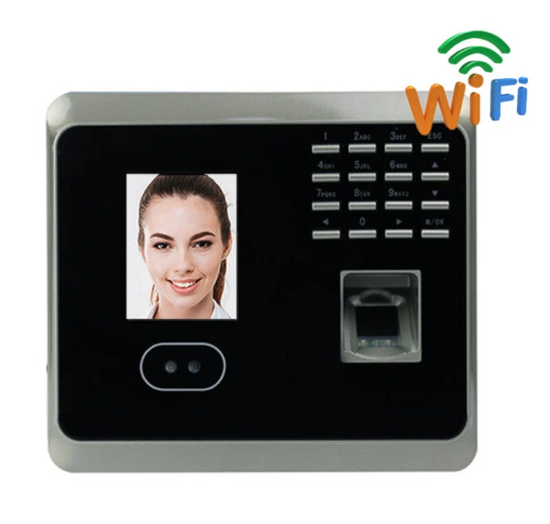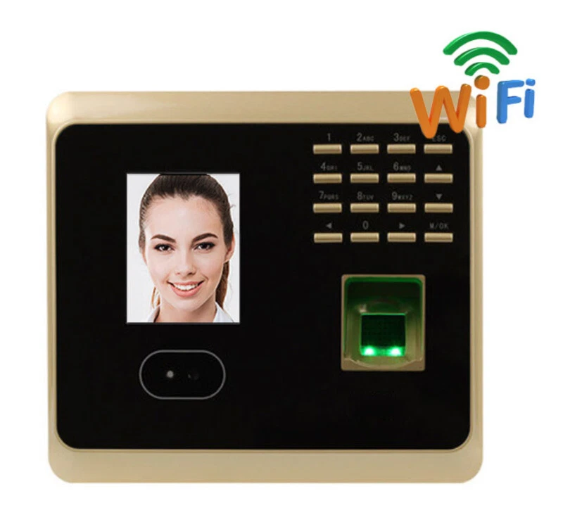 ZKTeco UF100Plus WiFi TCP/IP Biometric Fingerprint Face Recognition Time Attendance System UF100Plus multi-biometric identification time attendance adopts zk Softwares latest ZMM220 platform with zk Face 7.0 algorithm and 300 users capacity memory. The first zk face device with keypad. Face, fingerprint and password multi-biometric identification method will be applicable more widely. All operations of UF serious are designed to be performed on the 2.8inches TFT screen. Multi-model communications includes TCP/IP USB, WIFI function allow U disk to download the attendance report directly. Features: Identification methods include Face/ RFID/ Password. Elegant ergonomic design with keypad. 2.8" TFT color screen is user-friendly and very intuitive. 6 user-defined function keys. Optional extendable scheduled-bell. Infra-red optical system enables user-identification in poorly lit environments. TCP/IP USB, WIFI function allow U disk to download the time attendance report directly. Specifications: Hardware Platform ZMM220 Multi-Medium Development Platform Fingerprint Sensor ZK optical Camera High Resolution Infrared Camera Display 2.8" TFT color screen Face capacity 300(1:N) Fingerprint capacity 1000 Card capacity 1000(Optional) Logs capacity 80,000 Algorithm Version Face 7.0 Software Free Communication TCP/IP,USB,WIFI USB-HOST Yes Time attendance Standard functions Face,fingerprint password,Automatic Status Switch, Self-Service Query, T9 input, DLST Optional functions RFID/MF Card Power supply 5V1A Verification Speed 1 sec Operating tempreture 1-45 Operating Humidity 20%-80% Dimension(W*H*D) 167*142*27 mm Gross Weight 1kg