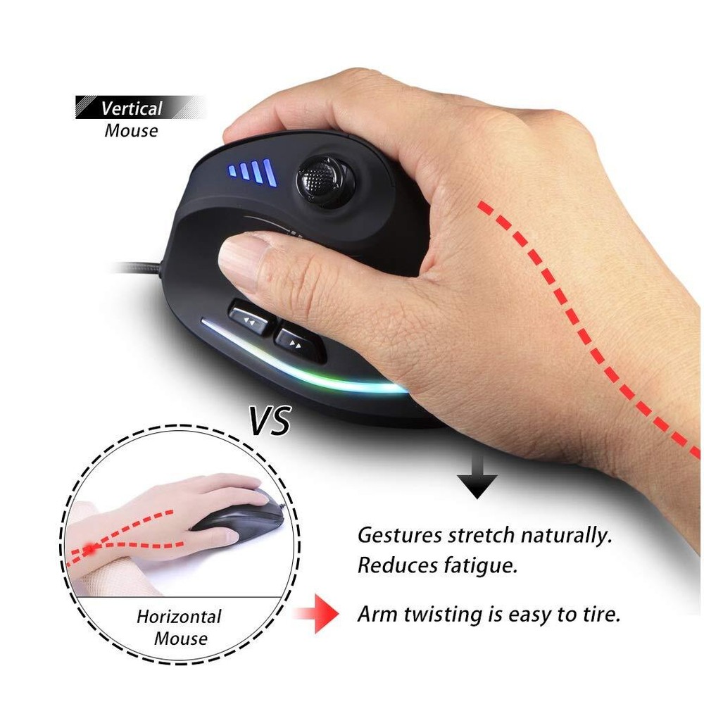 Specification: Button number:6 buttons + 1 joystick = 11 keys Tracking System: optical USB cable length: 1.8m Working voltage/current: 5V/100mA Button life: 10 million times Roller life: 1.2 million turn Product dimensions: 110*72*76.5mm Product weight: 170g Resolution: 1500-2500-4000-7000-10000DPI(5 adjustable levels and Customizable sensitivity) Rate of return: 125-1000Hz Marco function brief : ◎When macros enter from the “Key N” option, the selected macros are activated on the left button. For example, if you set the Key 4 as ABCD, when you press Key 4, the left button means ABCD. ◎Select another key to close macro, which means “Close Key N”. When you turn on N macro, the light will stay on. The light will become normal setting color when you turn off N macro. ◎If entered from the assigned macro, select which button as the assigned macro to press on which button. For example, if you set the Key 4 as ABCD, the function of Key 4 means 1234. ◎The configuration file has 2 groups. You can select button as the configuration file to switch to group 2 or directly drive the setting. The light of the group 2 configuration file is always on blue by default. You could set it as any other color. ◎You can set up to 32 left clicks in the armoury, and the cursor can be adjusted with each click. Y+ moves the cursor upward, Y- moves downward, X- moves left and X+ moves right. System requirements: Windows XP(x64)/Vista/7/8/10/Linux An available USB port Package Contents (attachment) : x1 Instructions x1 Foot mat x1 Driver disk x1 (Update software please visit the official :switch to English language by clicking "English" on page) Ergonomic Vertical Design.Ergonomic Vertical Design.Unlike those traditional ones which strain wrist and arm over time, causing great pain. The vertical design provides better support for your forearm minimizing wrist pain that can come from twisting. Pixart PMW3325 IR sensor and 5-adjustable DPI level.Color-changing RGB marquee belt on both sides. Programmable and customizable.11 programmable buttons and On-board memory. Widely with Windows XP(x64)/Vista/7/8/10/Linux.Please peel off the transparent protective film on the bottom of the before use. & Support: the platform's return policy, we provide the full technical support after selling and any questions about the product, feel freely to us.