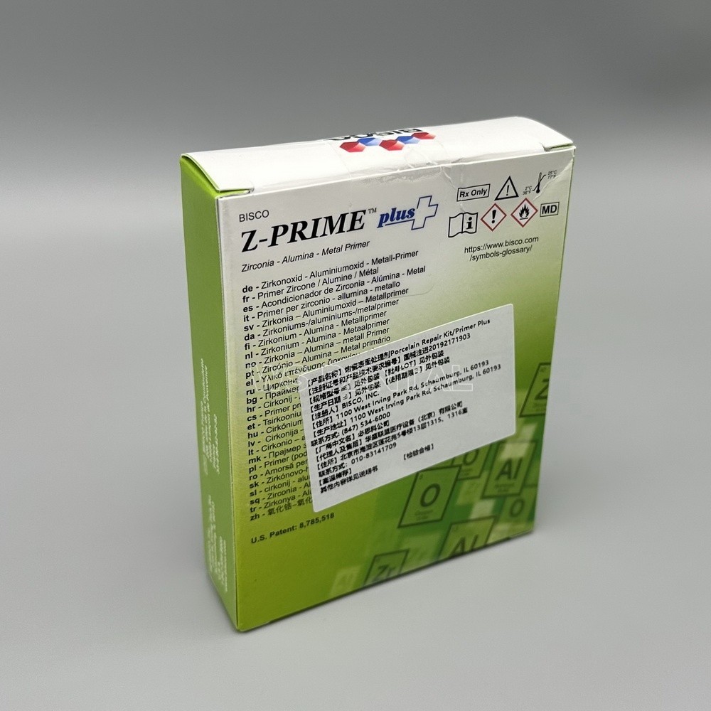 2ml/Bottle Z-Prime Plus single component priming agent for Zirconia Metal Alumina Z-Prime™ Plus Z-Prime Plus is a single component priming agent for Zirconia, Metal, and Alumina substrates. Zirconia – Alumina – Metal Primer Z-Prime Plus is a single-component, MDP-containing, priming agent used to enhance adhesion between indirect restorative materials and resin cements. Z-Prime Plus significantly enhances bond strengths to Zirconia, Alumina and Metal substrates due to its unique combination of two active monomers, MDP, a phosphate monomer, and BPDM, a carboxylate monomer.* This combination of primers gives Z-Prime Plus a synergistic effect resulting in its high bond strengths.* Z-Prime Plus 2ml bottle provides approximately 120 applications and the 4ml provides approximately 240 applications. Unique Benefits: High bond strengths to Zirconia, Alumina and Metal restorations Compatible with light-cured and dual-cured resin luting cements Convenient, single bottle delivery offers ease of dispensing Versatility and durability with many different substrates Significantly enhances bond strengths of other resin cements* Clinical Significance: Z-Prime Plus significantly enhances bond strengths to Zirconia, Alumina and Metal substrates Pro Tip: Z-Prime Plus provides long-term bond strength to Zirconia due to its proprietary formulation of MDP and BPDM