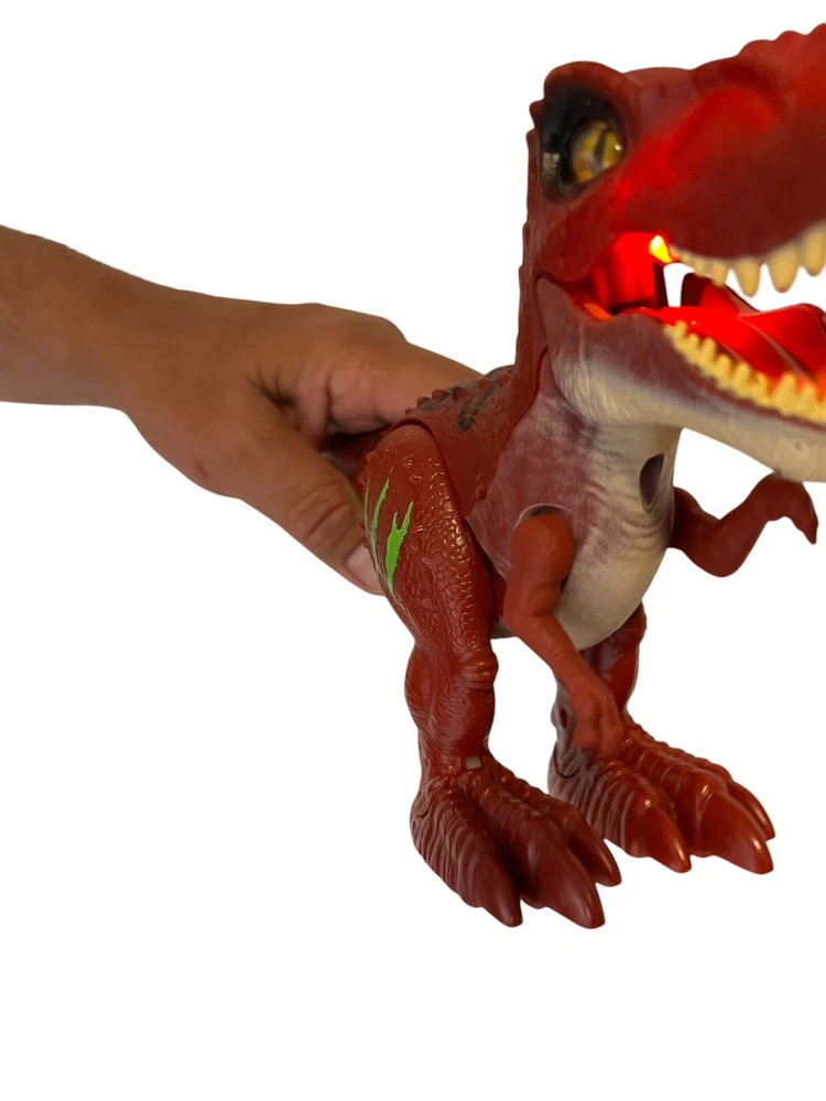 Get ready for some prehistoric fun with the ZURU Robo Alive Attacking T-Rex Red Dinosaur Robotic Pet! This interactive toy is perfect for kids aged 3-11 years old who love electronic and interactive playtime. With its bright red color and realistic T-Rex design, this robot will surely capture the imagination of your little one. Made in China and part of the ROBO Alive character family, this ZurU toy is a must-have for any young dinosaur enthusiast. Its roaring sounds and walking movements will make it feel like a real T-Rex is in the room. So why wait? Add this exciting electronic toy to your child's toy collection today!