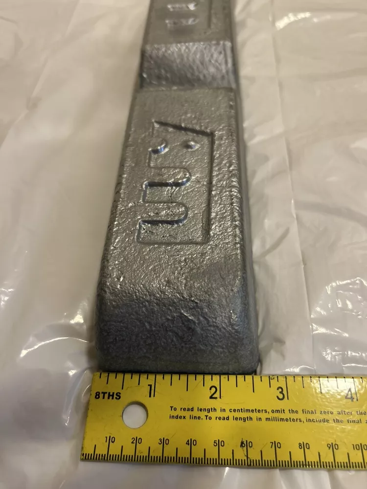 This Zamak ZA-8 Ingot (approximately 20 lb.) is a high quality product manufactured by Allied Metals Company. It is a foundry metal and zinc alloy that contains 8%-9% aluminum, 1% copper, and 90%-91% zinc, making it a popular choice for foundry use. The ingot comes in a unit quantity of 1. The ingot is formed with deep reliefs to facilitate separation when less than the full ingot is needed. California Prop 65 warning is not required. Buyer assumes all responsibility for safety in subsequent processing of the metal.
