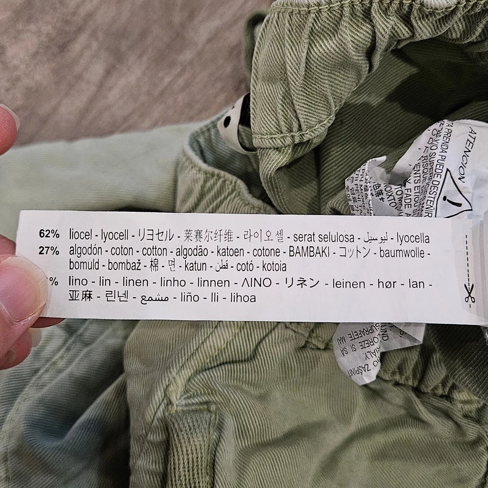 Zara Joggers Womens Size XS Green Linen Lyocell Blend Drawstring Pull On Pockets Measurements are included in the photos Excellent Pre Owned Condition Bundle for a discount or send an offer