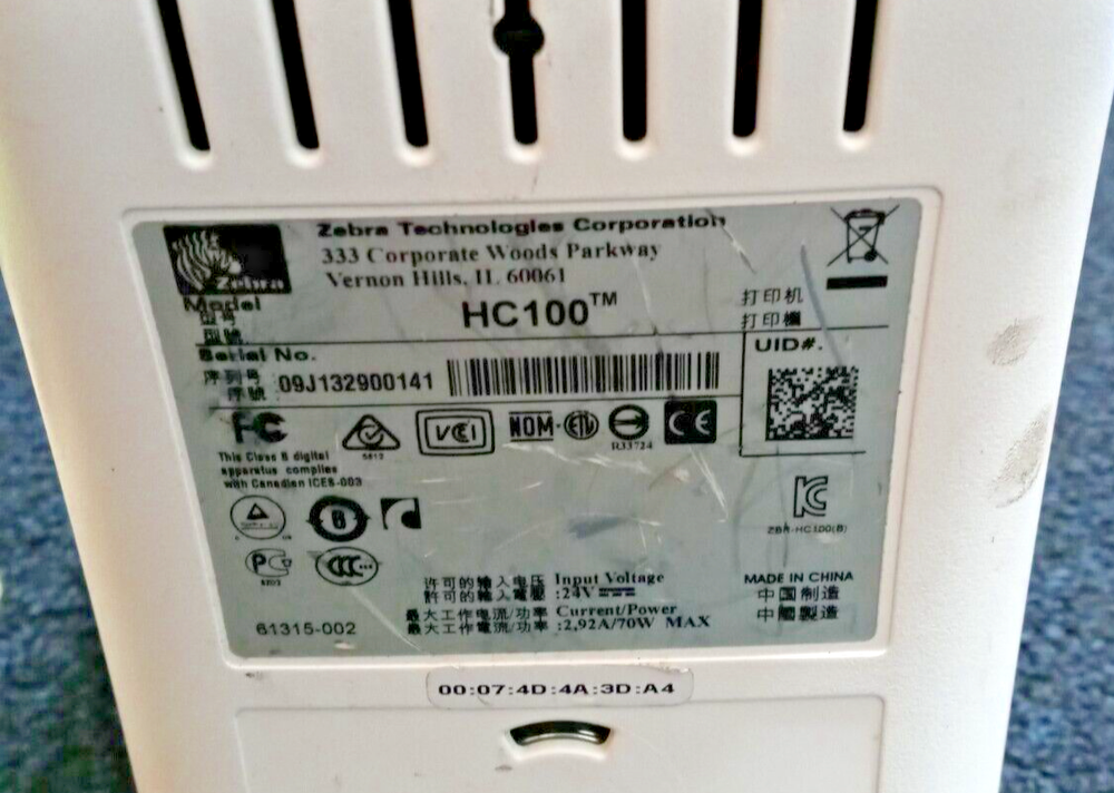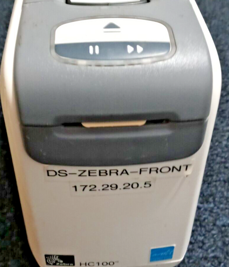 The Zebra HC100 (HC100-3001-0000) Label Thermal Printer is a robust solution for all your labeling needs. Offering multiple connectivity options such as Wireless, Serial (RS-232), and USB 1.0/1.1, it ensures seamless integration with various devices and systems. This printer employs thermal technology, eliminating the need for ink or toner, ensuring cost-effectiveness and reliability. With the ability to produce black and white output, the Zebra HC100 is perfect for printing labels in a variety of settings, from warehouses to offices. Its user-friendly interface and durable construction make it both a practical and efficient choice for your labeling requirements. Used No Power Supply Good Condition To ship to Puerto Rico, US Virgin Islands, Alaska, Hawaii, and Guam there will be an additional cost