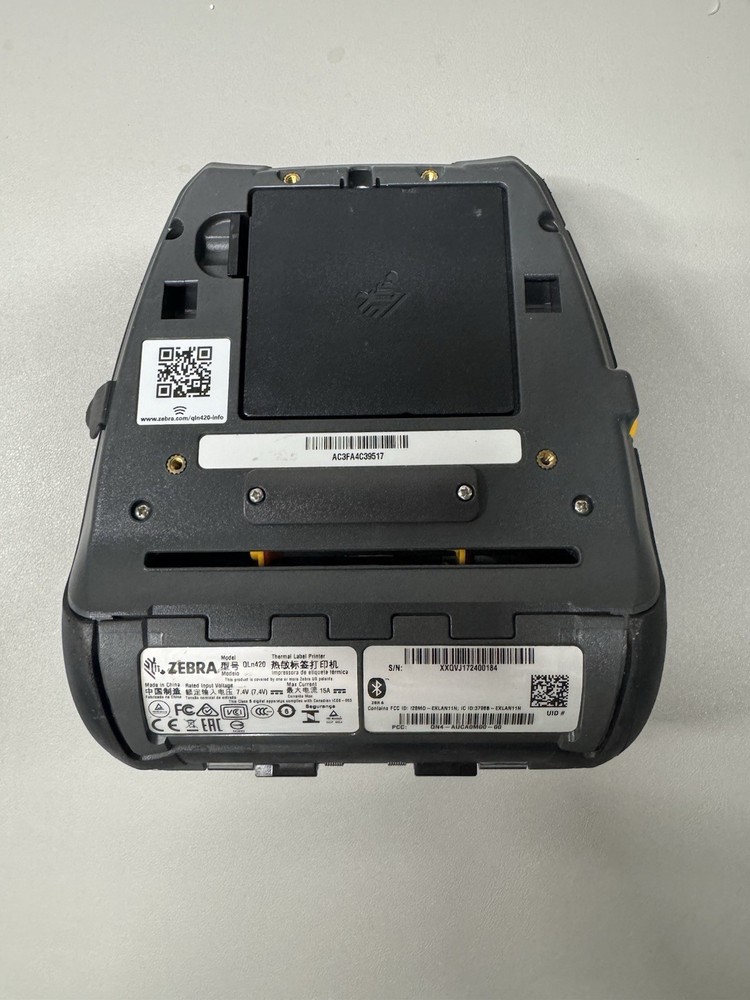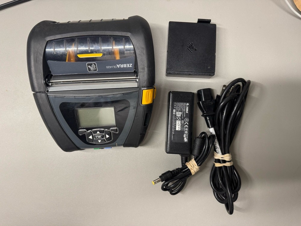 Zebra QLn420 Direct Thermal Bluetooth Barcode Label Mobile Printer. Battery and AC Adapter Included. PCC: QN4-AUCA0M00-00 Media Size Maximum: 4 inches Printer Connectivity Type: Bluetooth, USB Tested OK!