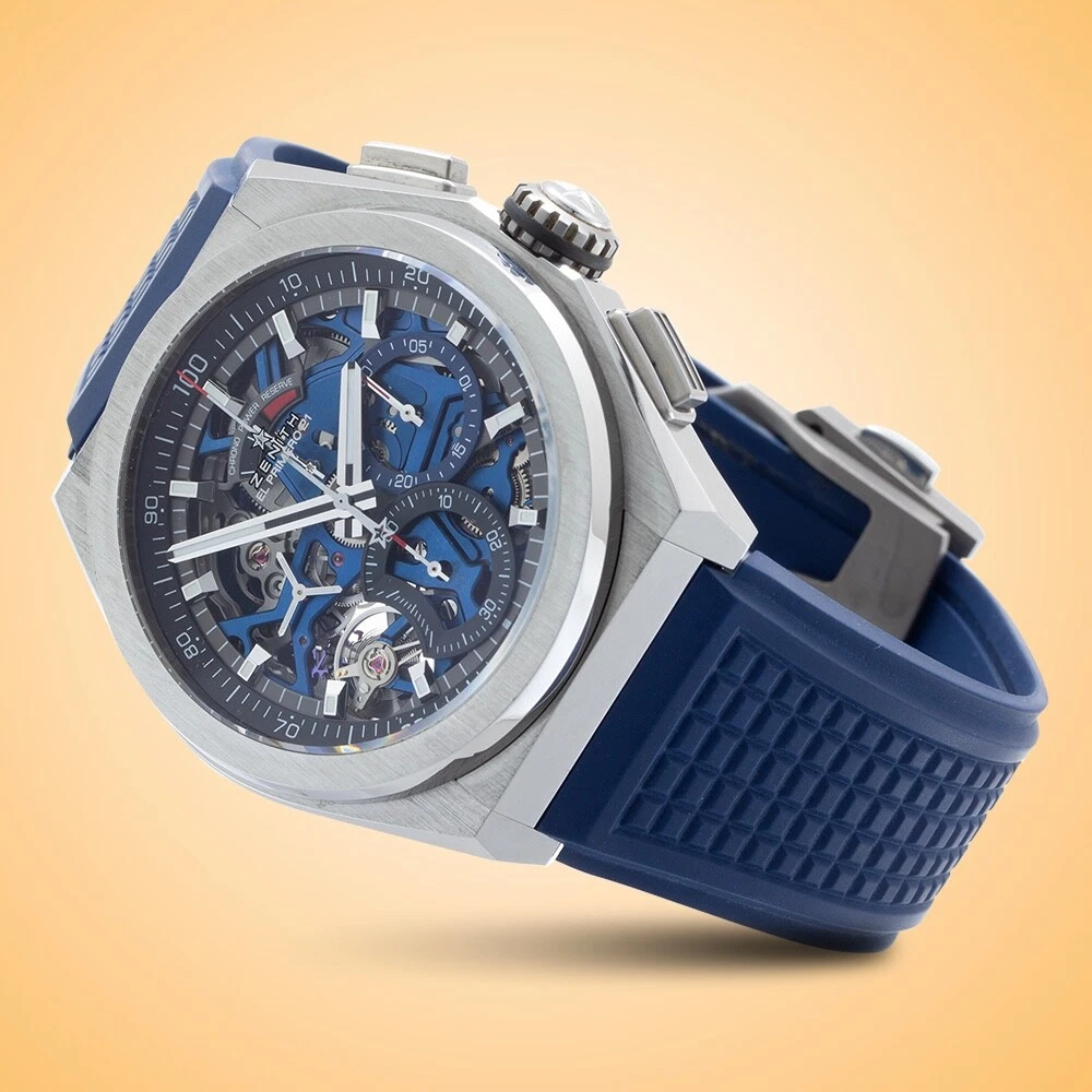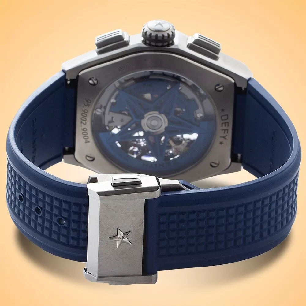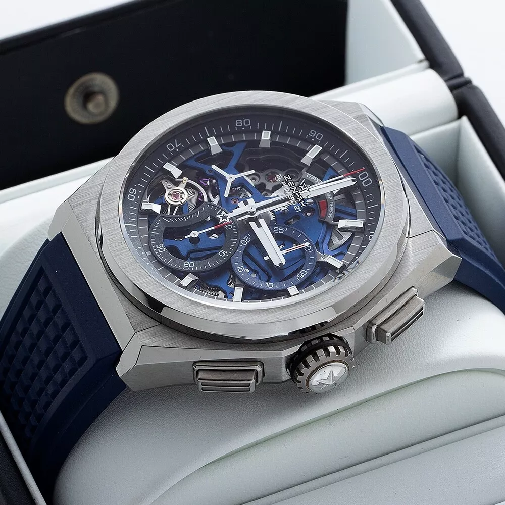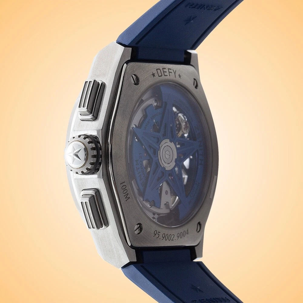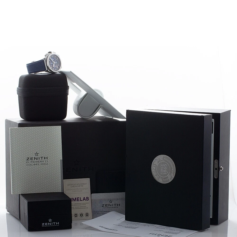 Essence of Time Zenith Defy El Primero 21 Skeleton Dial Automatic Chronograph Titanium Men’s Watch 95.9002.9004/78.R590 Description: Owning a timepiece from one of the truly great producers is surely one of life’s special treats. Swiss manufacturer Zenith was founded in 1865 and has been crafting a wide range of intriguing, and oftentimes award-winning, timepieces ever since. The visually dynamic and alluringly kinetic skeleton dial of this Zenith Defy will captivate your imagination and become the star piece of your collection. With gorgeous blue accents the dial is alive with luminous index hour markers and rhodium-plated hands as well as a convenient power-reserve indicator at 12. The chronograph functions deliver a 30-minute counter at 3, a large 60-second counter at 6, and a red-tipped center hand to read down to 1/100th second via the outer track in black and white. This hand makes a full revolution every second and sports the Zenith star logo as a counterweight. There is an elegant running small seconds subdial at 9. Peer through the scratch-resistant sapphire crystal, as well as the exhibition case back, and you will be enchanted to see one of Zenith’s famed calibers: the manufacture certified chronometer El Primero 9004, which is a self-winding movement that beats at 36,600 vph, possesses 53 jewels, and gives you a 50-hour power reserve. The chronograph function delivers a 50-minute power reserve and is hand-wound. The luxuriously rugged and lightweight brushed titanium case measures 44 mm in diameter, 14.5 mm in height, and rests upon a fashionable blue rubber strap with a deployant clasp. This watch is rated down to 100 m / 10 atm. From its expert craftsmanship and chronometer accuracy to its vibrant stylings, we believe this Zenith Defy will make an essential addition to your collection. Standout feature(s): Fascinating multi-layered skeleton dial and exhibition case back; famed El Primero COSC-certified chronometer caliber with 50-hour power reserve; luxuriously rugged and lightweight brushed titanium case; convenient power-reserve indicator; attractive blue rubber strap. Details at a glance: Model Reference: 95.9002.9004/78.R590 Case Material: Titanium Case Dimensions: 44 mm Case Height: 14.5 mm Movement: Self-winding automatic, 36,000 vph, 53 jewels, 60-hour power reserve Caliber: Zenith manufacture certified chronometer El Primero 9004 Complication(s) / Feature(s): Standard time, small seconds, chronograph, power-reserve indicator Dial: Skeletonized Crystal: Scratch-resistant sapphire Winding Crown: Push / pull Water-resistance: 100 m / 10 atm Band: Blue rubber strap Clasp: Titanium deployant buckle Country of Origin: Switzerland Retail Value: $13,000.00 Condition: Pre-owned in excellent condition; full manufacturer’s service completed November 2024 Comments: Includes original boxes, service box, instructions manual, chronometer certificate, warranty card and service papers Auction and Payment Procedures: We welcome all interested eBay watch shoppers to participate in our auctions and have highly valued continuous support from eBay's community. We would like to offer our Products , Experience and High Service Level to all eBay members – Domestic and International , Experienced Shoppers and Novices alike. A winning bidder needs to contact us within 3 (three) days after the auction's successful purchase according to eBays' and our rules and policies to make all necessary payment arrangements. The payment has to be received within ten days after the auction's closing. We encourage our potential eBay customers to contact us with all vital questions regarding our merchandising, payment procedures, shipping, etc. prior or during active auctions, so we could make your shopping and trading experience with us as pleasant as possible . A Winning Bid is a legal binding contract between buyer and seller per eBay Rules and Regulations, and transactions must be fulfilled according to these policies. Domestic Shipping: Shipments are performed via fully insured Next Day or 2nd Day UPS Delivery service, and the shipping charges are based on the insured amount and urgency of the shipment. All packages are shipped with "Signature Required" for customer's security and have to be signed for by an authorized adult. We can make certain shipping accommodations by using different shipping couriers and ask potential customers to contact us with their inquiries. International Shipping: We ship our watches Worldwide and have extensive experience in international shipments. Our international deliveries are performed via fully insured International Priority FedEx service. We encourage our International bidders to contact us for shipping quotes to the countries of their residence since shipping charges vary quite significantly depending on geographic regions of the world. Please note, that all International customers are responsible for VAT, any associated taxes, customs fees imposed and charged by their local governments. Warranty Policies: Essence of Time, Inc. provides a Warranty of 2 Years on brand new, unworn watches, a 1-Year Warranty on pre-owned certified watches , and 9 0-Days mechanical warranty on vintage timepieces from the date of purchase. If a problem with the watch occurs during this period, customers need to contact us and request our Authorization to return the watch for repairs. We keep our customers updated on a status of repairs, and once a watch is fixed, customer will be notified and the watch will be shipped back. Our warranty doesn't cover damages caused by excessive wear and tear, scratches on the case and crystals, non-compliance with manufacturer’s specifications in operating the watch, water-resistance limitations and physical abuse. Returns: We offer 14-Days Return Policy on our watches from the date of receipt of the watch. A customer needs to notify us by the end of a 14th Day of his / her intentions to return a watch, and it has to be shipped back to us as s