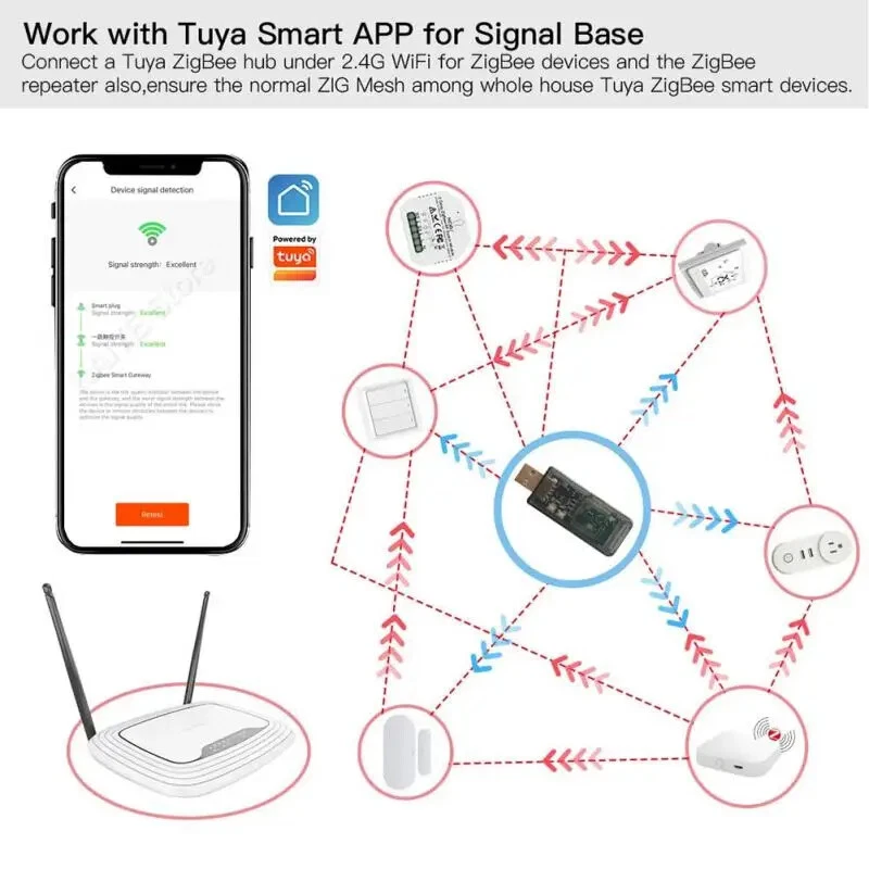 Zigbee 3.0 Signal Repeater USB Signal Amplifier Extender For Tuya EWeLink Home Assistant ZigBee2MQTT Tasmota Device Automation Description: 1、Pre-flashed with EZSP v8 (EmberZNet Serial Protocol version 8) 2、Can use ZHA in Home Assistant or Zigbee2MQTT (pre-alpha) 3、Base on EFR32MG21 CH340E 4、 20dBm output gain,PCB antenna 5、Plastic Shell 6、Support OTA Via Uart (Press the BOOT button,then press and release the nRST button, finally release the BOOT button) 7、Baud rate :115200 If the device is following Zigbee standards it is possible it will work with other gateway solutions, it is just not confirmed as working yet! It comes pre-flashed with an unsigned EmberZNet 6.7.9 Zigbee NCP application firmware with Silabs standard EZSP v8 (EmberZNet Serial Protocol version 8) interface enabled as well as the standard Silabs Gecko Bootloader firmware for recovery, meaning it can be used either as-is out-of-the-box or flashed with custom application firmware via USB. Hardware is at its core based onSilicon Labs EFR32MG21 Series 2 Multiprotocol Wireless SoC (part numberEFR32MG21A020F768IM32) and aWCH CH340E USB to Serial/UART Bridge Controller. While it only has a PCB circuit board antenna the radio has an integrated 20 dBm Power Amplifier (output power) and -104.5 dBm Receive Sensitivity which should be made for a very good Zigbee coordinator or Zigbee router if both hardware and firmware were properly implemented. TheElelabs EZSP Firmware Upgrade Utility (https://github.com/Elelabs/elelabs-zigbee-ezsp-utility/) orwalthowd firmware update Docker image(https://github.com/walthowd/husbzb-firmware) can be used to flash the firmware to a newer or older version. New and old firmware official images are currently being provided at github (https://github.com/xsp1989/zigbeeFirmware/tree/master/firmware/Zigbee3.0_Dongle) Specifications: 1. Pre-flashed with EZSP v8 (EmberZNet Serial Protocol version 8):The device has been pre-flashed with EZSP v8, which is an EmberZNet Serial Protocol version 8. 2. ZHA in Home Assistant or Zigbee2MQTT (pre-alpha):It supports ZHA (Zigbee Home Automation) and can be used with Home Assistant or Zigbee2MQTT (pre-alpha). 3. Base on EFR32MG21 CH340E:The device is based on the EFR32MG21 CH340E, which provides excellent performance and compatibility. 4. 20dBm output gain,PCB antenna:The device has an output gain of 20dBm and uses a PCB antenna for better signal quality and range. 5. Plastic Shell:The device is designed with a plastic shell for protection and durability. 6. Support OTA Via Uart (Press the BOOT button,then press and release the nRST button, finally release the BOOT button):It supports OTA (Over-The-Air) updates via Uart, which allows for easy and secure updates without requiring manual intervention. To perform the update, press and hold the BOOT button, then press and release the nRST button, finally release the BOOT button. Package Included: 1*ZigBee3.0 Universal Gateway USB Dongle