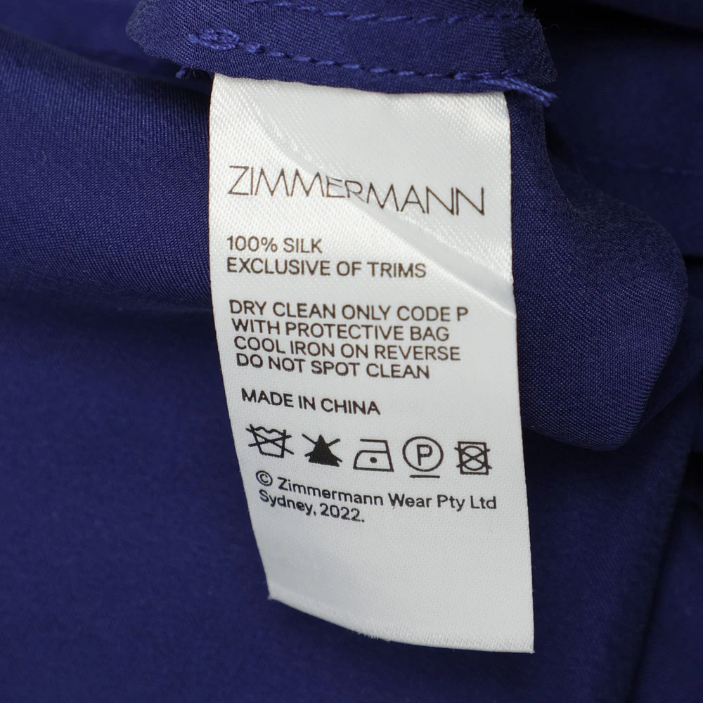 This stylish maxi dress is a fashionable and versatile piece that exudes elegance and comfort. With its long silhouette, it provides a flattering and feminine look. Designed with chic details and unique cuts, it effortlessly combines fashion and sophistication, making it a go to choice for various occasions.Certified by The Luxury Closet - This item has gone through a detailed authentication process overseen by our experts. We offer a lifetime guarantee of authenticity on all our items. Import duties, taxes and charges are not included in the item price. These charges are the buyers responsibility. Please check with your country’s customs office to determine what these additional cost will be prior to buying. Our eBay Store About Us Contact Us Add to Favorite Sellers Zimmermann Blue Indigo Silk Belted Maxi Dress S $449.9 This stylish maxi dress is a fashionable and versatile piece that exudes elegance and comfort. With its long silhouette, it provides a flattering and feminine look. Designed with chic details and unique cuts, it effortlessly combines fashion and sophistication, making it a go to choice for various occasions. Product Details Brand Color Blue Dimensions Material Silk Size S Outsole Width Outsole Length Heel Height Includes Price Tag, The Luxury Closet Packaging Certified by The Luxury Closet This item has gone through a detailed authentication process overseen by our experts. We offer a lifetime guarantee of authenticity on all our items. How We Check The in-house team of experts at The Luxury Closet is highly trained to verify the authenticity and the condition of the luxury products. They ensure that only 100% authentic items are put on sale.The evaluation process is unique with its own mix of assessment criteria and differs according to the category. Each item is evaluated based on the following combination of hallmarks, hardware, stitching, symmetry, material, craftsmanship, stamping, codes, hologram stickers, and packaging. Our authenticators also check if the items have been modified or amended (e.g., aftermarket diamonds, replaced batteries, repaired bags, etc.) International Buyers Import duties, taxes and charges are not included in the item price. These charges are the buyers responsibility. Please check with your country’s customs office to determine what these additional cost will be prior to buying.