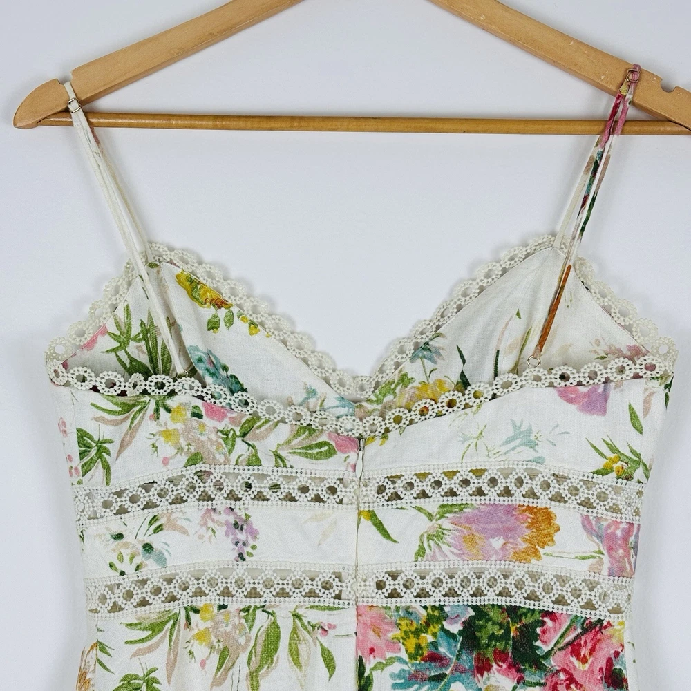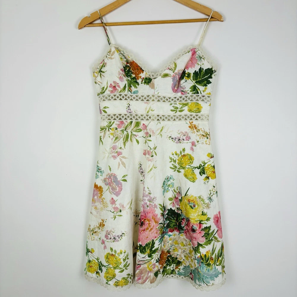 Zimmermann Dress Size 1 AU 10 US 6 Heathers Sundress Short Mini Linen Approximate measurements laying flat: Armpit to armpit 40cm Waist 35cm Hips 56cm Length 85cm Combined postage available – please advise if you are purchasing more than one item! Thank you for visiting my store. A