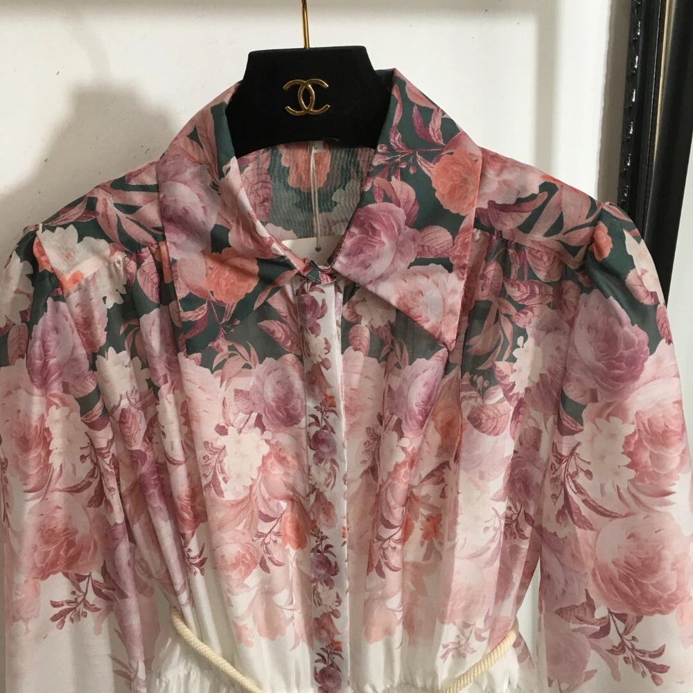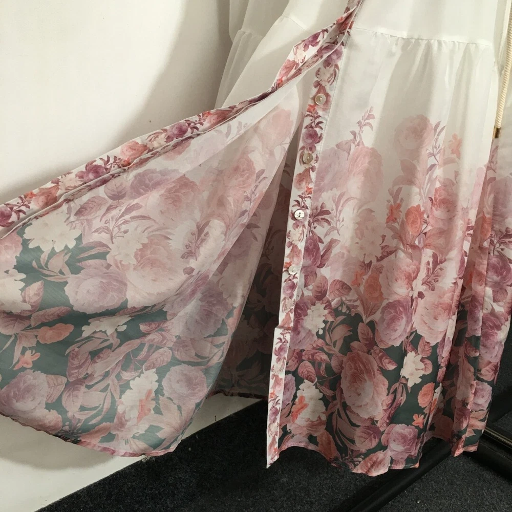 Elevate your wardrobe with the Zimmermann Silk Dress, a versatile piece that's perfect for a range of occasions. In a size large, this midi-maxi dress boasts a stunning floral pattern that jumps out at first glance, set against a luxurious silk fabric that drapes beautifully for a flattering silhouette. Featuring long sleeves and suitable for business settings, casual outings, formal events, or cocktail parties, this multicolored dress embodies sophistication and style. The dress caters to a regular size type, ensuring a comfortable fit for those who adore fashion without compromising on comfort.