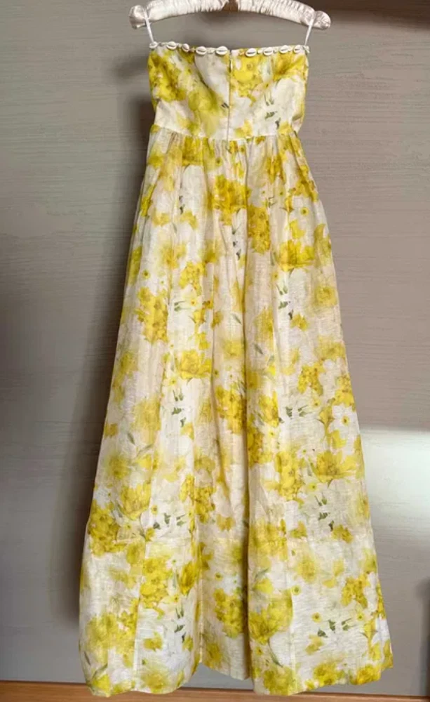 The Zimmermann Wonderland Shell Gown in Yellow Floral in size 0 is a spectacular and elegant dress, perfect for special occasions. It features a stunning silhouette and a luxurious feel, crafted from lightweight and delicate materials that offer fantastic movement. The beautiful floral design in yellow tones adds a fresh and summery touch, making it ideal for everything from weddings to gala events. This gown has only been worn once and is in excellent condition, making it a perfect choice for anyone looking for an almost-new designer piece. The original price is approximately $1,700, and the rental price is about $380 Feel free to make an offer!