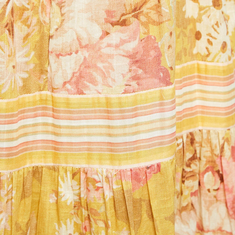 This stylish midi dress exudes elegance and sophistication. Its flattering length falls between the knee and ankle, offering a versatile option for various occasions. With its chic design, it combines modern trends with timeless charm, making it a must have wardrobe staple for fashion forward individuals.Certified by The Luxury Closet - This item has gone through a detailed authentication process overseen by our experts. We offer a lifetime guarantee of authenticity on all our items. Import duties, taxes and charges are not included in the item price. These charges are the buyers responsibility. Please check with your country’s customs office to determine what these additional cost will be prior to buying. Our eBay Store About Us Contact Us Add to Favorite Sellers Zimmermann Yellow Floral Print Cotton Shoulder Tie-Up Midi Dress L $207.9 This stylish midi dress exudes elegance and sophistication. Its flattering length falls between the knee and ankle, offering a versatile option for various occasions. With its chic design, it combines modern trends with timeless charm, making it a must have wardrobe staple for fashion forward individuals. Product Details Brand Color Yellow Dimensions Material Cotton Size L Outsole Width Outsole Length Heel Height Includes The Luxury Closet Packaging Certified by The Luxury Closet This item has gone through a detailed authentication process overseen by our experts. We offer a lifetime guarantee of authenticity on all our items. How We Check The in-house team of experts at The Luxury Closet is highly trained to verify the authenticity and the condition of the luxury products. They ensure that only 100% authentic items are put on sale.The evaluation process is unique with its own mix of assessment criteria and differs according to the category. Each item is evaluated based on the following combination of hallmarks, hardware, stitching, symmetry, material, craftsmanship, stamping, codes, hologram stickers, and packaging. Our authenticators also check if the items have been modified or amended (e.g., aftermarket diamonds, replaced batteries, repaired bags, etc.) International Buyers Import duties, taxes and charges are not included in the item price. These charges are the buyers responsibility. Please check with your country’s customs office to determine what these additional cost will be prior to buying.