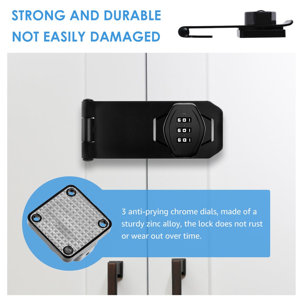 [---Welcome TO Our Store! Happy Shopping! Happy Life---] Highlight description: [3-Digit Password Lock] The initial password of this cabinet password lock is 000, and the password can be set or modified when the lock is unlocked. [Keyless Safety Lock] This safety lock does not need managing a dozen keys or changing locks. It is safe, long-lasting metal cam lock with 1,000 possible combinations. [Sturdy Zinc Alloy Material] Made of zinc alloy material, this lock is sturdy and not rust or wear out over time. It is equipped with 3 tamper resistant chrome dials. [Resettable Password Lock] This lock does not need expensive kits or replacement disks. If you want to change combination, just lock your combination to the open combination and press the reset button while changing to the desired combination. [Suitable for Single Door Installation] The safety lock is only suitable for single door installations, such as pet doors, cabinets, drawers, mailboxes, safes, office filing cabinet locks and more. Detailed description: Product Name: Cabinet Password Lock Material: Zinc Alloy Size Buckle:102×41mm Lock: 41mm Color: Black Notes: 1.There may be slight differences between the picture and the actual color of the commodity. We will try our best to show you the exact color. 2.Please allow slight dimension difference due to manual measurement. Parts List: 1×Buckle 1×Lock 7×Screws We accept Payoneer/Mastercard/VISA/Google Pay/American Express etc. Immediate payment is needed, so that we can finish your orders, then dispatch and post them in time. We really appreciate your business with us, and hope to keep it lasting. Orders will be processed and dispatched within 1-5 working daysafter payment received from Monday to Friday. Saturday and Sunday orders will be posted in the following Monday. when items are in peak period, the time will be prolonged according to certain situations, which may beyond our control, but we are always ready to help you track the delivery info. Returns: 1.Defective goods must be returned within 30 days from the delivery date. The buyer is responsible for the return shipping fee. We will not reimburse the return shipping fee unless when we have shipped the wrong item. 2.We reserve the right to refuse any returns for our reasons. Contact Us: 1) We are committed to provide you with great service. If you are in any way dissatisfied with your purchase: Please DO NOT open eBay case immediately. Please DO NOT open PayPal Dispute immediately. Please DO NOT leave us a low score for DSR immediately. Please DO NOT leave us a neutral/negative feedback immediately. Always communicate first. Please contact us via eBay message. We will work with you to resolve any problem. 2) We always reply messages within 2 business days, please check your Spam Inbox or eBay Message Box if you do not receive a response within 2 business days. We are always making efforts to providing better products and service. if you feel satisfied with us, please leave us a 5-Star on the Detailed Seller Ratings.