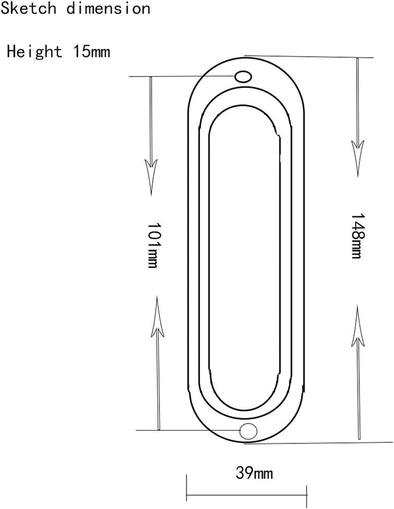 Size 148*39*15mm(L*W*H), Hole distance 101mm Made of zinc alloy.Package include screws Surface technolog:Polishing Plating Surface color:Nickel wire drawing,titanium,dark copper plating,antiqu brass plating,Black,chrome Be suitable for drawers closets,doors and windows etc Safety,reliable and good looking embedded door handle.