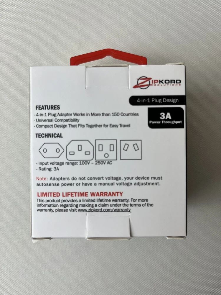 ZipKord Universal International Compact 4-in-1 Travel Plug Power Adapter