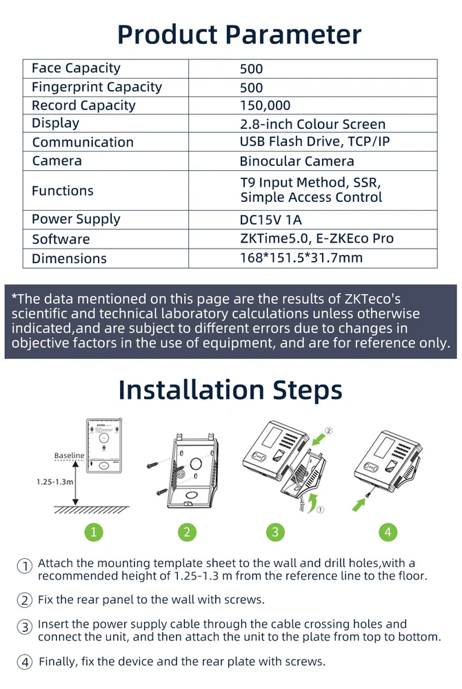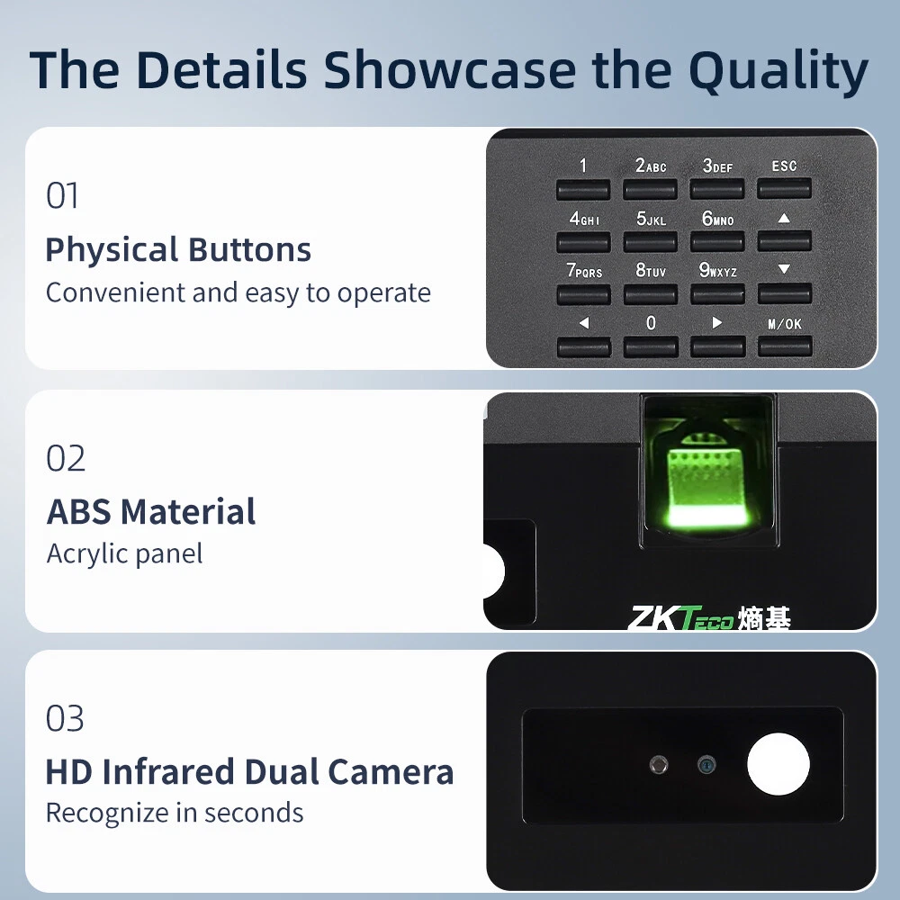 You may also like ZKTeco ZK9500 Live10R Indoor Biometric Fingerprint USB Scanner Reader Sensor 45.99 USD Free shipping Dahua VTO2211G-WP 2MP WiFi PoE IP Video Door Station WDR IP65 W/ Rain Cover LOT 19.99 USD Free shipping Dahua VTM22A Horizontally Inclined Bracket for Door Station VTO1000J 9.89 USD Free shipping Dahua VTOB108 Metal Material Surface Mount Box for VTO2000A Outdoor Station 21.99 USD Free shipping ZKteco TF1700 TCP/IP Fingerprint Time Attendance IP65 Access Control Terminal 138.99 USD Free shipping ZK TPM005B 12V5A Inbio160/260/460 Door Lock Access Control Power Supply 43.99 USD Free shipping Hikvision DS-KB8113-IME1 1080P POE Vandal Resistant Intercom IP65 Video Doorbell 132.99 USD Free shipping ZKTeco MA300 Metal Shell Fingerprint Biometric Reader Time Attendance Access 155.99 USD Free shipping Dahua VTO3211D-P1/P2/P4-S2 PoE 1/2/4-button Outdoor Doorbell Villa Door Station 136.99 USD Free shipping ZKTeco SC700 RFID TCP/IP Access Control Time Clock Attendance Entrance System 83.0 USD Free shipping ZKTeco iFace502 Face Fingerprint Biometric Access Control Time Attendance System 225.99 USD Free shipping Dahua VTM08R Rain Cover Aluminum Alloy for VTO3221E Outdoor Video Intercom 28.99 USD Free shipping ZKTeco F22 WIFI TCP/IP Fingerprint Time Clock Multilanguage Door Access Control 116.99 USD Free shipping Dahua VTM05R Surface-Mounted Rain Cover for VTO2202F Doorbell Video Intercom 35.99 USD Free shipping Hikvision DS-KH6320-WTE1 Colorful TFT Screen WiFi PoE Indoor Station Intercom 113.0 USD Free shipping 4.5" Wireless Wifi Video Door Phone Doorbell Camera 1MP Remote With SD Card Slot 80.0 USD Free shipping ZKTeco F22 TCP/IP 2.4" ID Wi-Fi Fingerprint Time Clock Access Control Machine 123.0 USD Free shipping Zkteco XFace600 5" TCP/IP Face Recognition Fingerprint Time Attendance Control 277.99 USD Free shipping Hikvision DS-KABV6113-RS Door Station Intercom Accessory for DS-KV6113-WPE1(B) 14.99 USD Free shipping ZKTeco ZK3969 TCP/IP Face Fingerprint Recognition Time Attendance Access Control 85.99 USD Free shipping Introduction: nFace102-S is a multi-spectrum intelligent facial recognition terminal launched by ZKTeco Technology, using visible light facial recognition algorithms, the product comes with a fill light, light adaptability, can be better adapted to the impact of the light environment, improve facial recognition accuracy, increase the user's experience of facial registration comparison; with a binocular infrared camera, 2.8-inch HD colour screen experience, to achieve personnel identity Quick verification; SSR self-service attendance function can export attendance report with one key, support TCP\IP, U disk communication mode, both door magnet, unlocking, out of the door switch and other access control management functions, which can meet the needs of the general public, to achieve efficient management of time and security. Features: *SSR self-service export reports, easy and efficient; *T9 input method easy switching, simple and convenient; *Support U-disk to download data, easy to manage; *Multiple intelligent verification methods, flexible choice; *Simple access control function, guarding work safety. Specification: Product Model nFace102-S Verification Method Fingerprint, Face Face Capacity 500 Fingerprint Capacity 500 User Capacity 500 Record Capacity 150,000 Display 2.8-inch Colour Screen Communication TCP/IP, U-disk, BS(Optional) Camera Binocular Camera Functions Record Enquiry, T9 Input Method, SSR, Timed State Changeover Optional Functions Door Magnet, Unlocking, Multiple Verification Methods Operating Temperature 0℃~45℃ Operating Humidity 20~80%RH Power Supply DC5V 1A Dimensions 168*151.5*31.7mm Software ZKTime5.0, E-ZKEco Pro Shipping: This product is shipped via standard shipping/Expedited Shipping(option). Please allow 5 business days for handling time of the item before it is shipped. Payments: We accept payment via Credit Card、Debit Card、Apple Pay、Google Pay or PayPal etc. Payment must be sent within 4 days of auction end. Returns: We have a 30 days full refund policy and buyer pays for return shipping(unless product is defective). Buyer must contact us before returning an item. Feedback: We will leave positive feedback for each buyer after the transaction is completed. We strive to maintain the best customer satisfaction, if you are satisfied with the receipt of your package please leave us a positive feedback as well. If for any reason you are not satisfied with the product you receive, please feel free to contact us to address the issue. We will ensure that you are satisfied. Customs duty/Tax: Import duty taxes are not included in the price of the item or in the shipping cost, and if additional duty charges are incurred, they will be borne by the buyer.