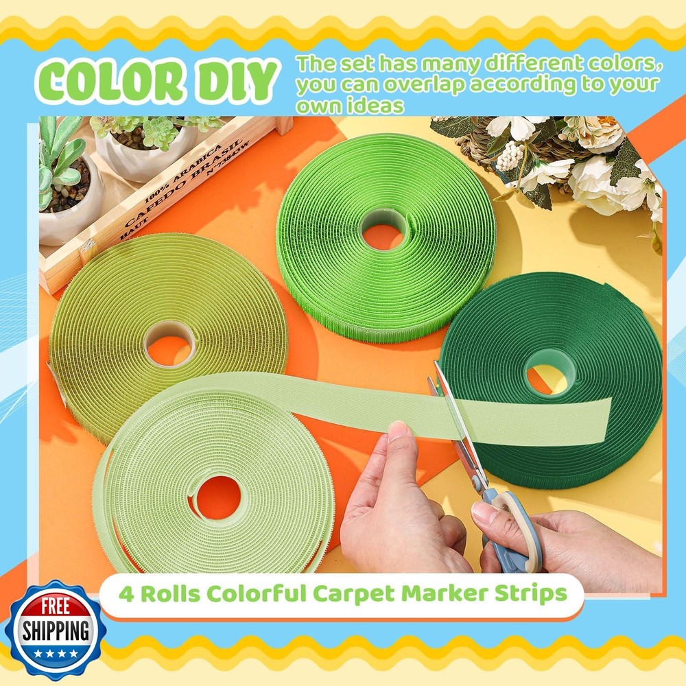 Zonon 4 Roll 100 Feet Carpet Marker Strips for Classroom Nylon Carpet Strip Tape Floor Spots Dots for School Teachers Supplies Classroom Decoration Back to School Office(Dark Green) Features Contains: you will get 4 rolls of carpet marker strips in 4 different green color, look bright and lovely, can help you attract kids' attention, and suitable for social distance marking for customers and employees Size: each roll of the carpet markers strips is 25 feet in length and 1 inch in width, which is enough for your need, easy to cut and trim to size with scissors, kids love finding their social distances from these brightly colored 1 inch strips Reliable material: these carpet markers strips are made of nylon, durable, non-toxic and safe, easy to clean, can support for a long time usage, and they can adhere securely to carpets and the hook and loop design make it won't damage the carpet when removed Function: carpet markers are applied to practice personal space and learning boundaries, to form straight lines, direct classroom traffic, identifying seating areas, and more Easy to carry and store: carpet markers adhere so well to carpets that custodians can vacuum over attached carpet dots without removal; They can also be removed, cleaned and stored in resealable packaging for use year after year Shipping Free & Fast Shipping: We offer free shipping to most of the USA with a normal delivery time of 3-7 days. However, due to the current situation, additional delivery time (up to 3 weeks) may be required for some items. Alternative Carriers: We may use alternative carriers (e.g., USPS, FedEx, UPS) to ensure your package arrives safely and on time. Due to the use of multiple carriers, we are unable to provide a tracking number automatically. Handling Time: Orders are processed and shipped within 1-2 business days of receiving cleared payment. Shipping Restrictions: Shipping to Alaska, Hawaii, Puerto Rico, Guam, and other US territories may incur shipping charges or delivery restrictions. Please contact us before ordering, or your order can be refunded/cancelled. State Restrictions: Certain items may not be shipped to California due to state regulations. Contact for Tracking Updates: If you require tracking updates or have any concerns about the delivery of your order, please feel free to contact us, and we will be happy to assist you. Return Policy 30-Day Hassle-Free Returns: If you are not completely satisfied with your purchase, you can return the item for free within 30 days of receiving it for a full refund or exchange. Easy Return Process: Contact us, and we will provide you with a prepaid return shipping label and detailed instructions. No Restocking Fee: There are no restocking fees for returns. However, the buyer is responsible for return shipping costs if the return is not due to a seller"s error. Refund Processing: Refunds will be processed within 1 business day of receiving the returned item in its original condition. Feedback Your feedback is extremely important to us. We strive to provide the best products and customer service possible. If you are satisfied with your purchase, please take a moment to leave us a positive review. If you have any concerns or issues with your order, please contact us before leaving negative feedback. We are committed to resolving any problems and ensuring your satisfaction. Contact Us If you have any questions or concerns, please feel free to reach out to our customer support team. You can contact us through the eBay messaging system. We are available Monday to Friday, 9:00 am to 5:00 pm EST, and we will do our best to respond to your inquiry within 24 hours. Thank you for supporting our small family business!