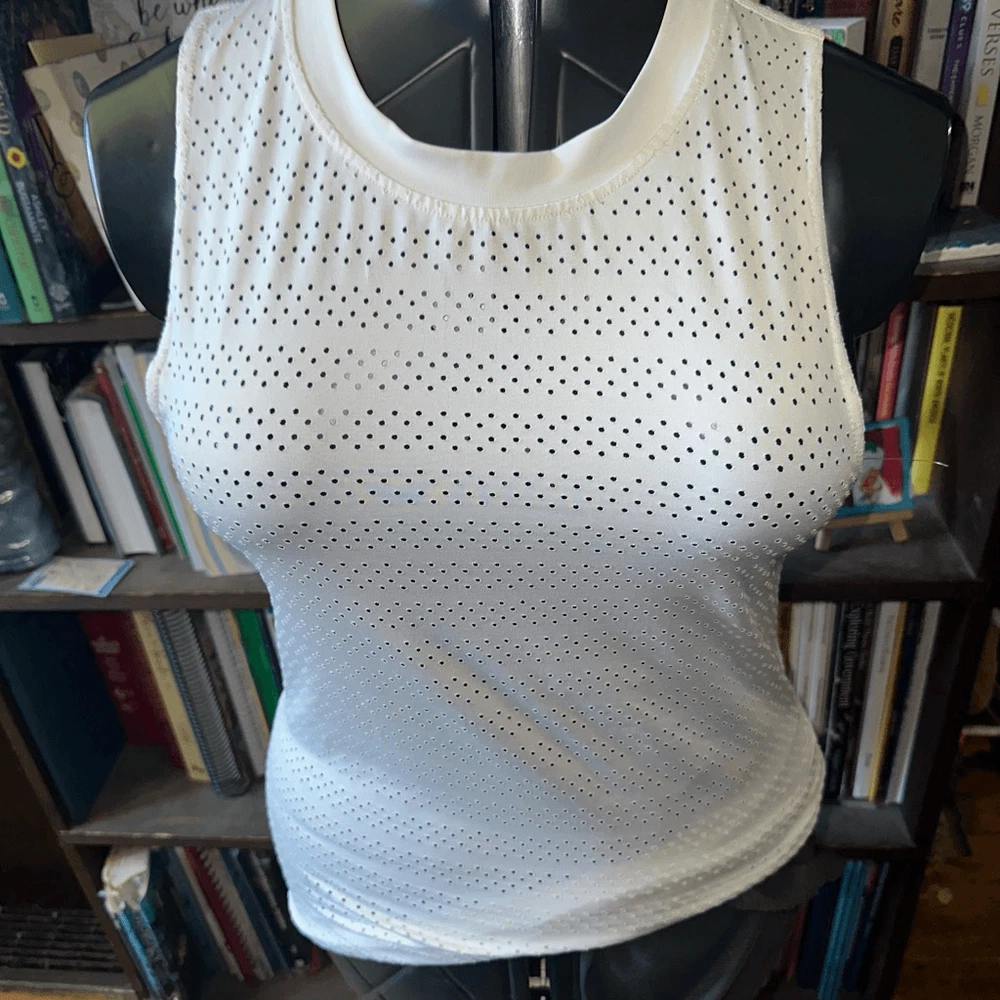 Zyia Active perforated, sleeveless, sporty, Athleisure, workout shirt. Approximately 18 inches from armpit to armpit, 16 inches across the waist, and 26 inches long. In good, used condition. Minor wash wear. From a pet and smoke free house.