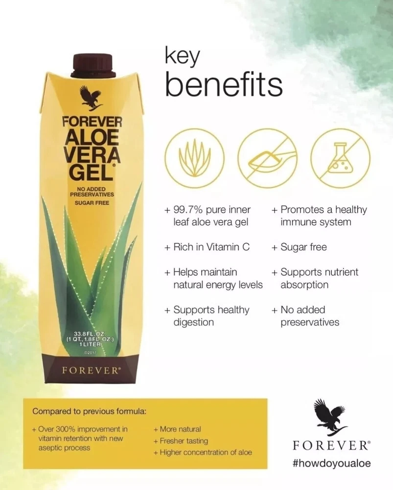 aloe vera gel 100 pure organic. Forever Living Aloe Vera Gel - 1 Liter - Exp. 2025 - 100% Pure Aloe.Product Description Exp 2025 Two bottles of New and improved Forever Living Aloe Vera Gel 33.8 fl.oz (1 Liter) contains 99.7% pure aloe Let us know which flavor would you like to purchase. Imagine slicing open an Aloe leaf and consuming the gel directly from the plant. Forever Aloe Vera Gel™ is as close to the real thing as you can get. A product of patented aloe stabilization process, this gel is favored by those looking to maintain a healthy digestive system and a natural energy level. The miraculous aloe leaf has been found to contain more than 200 compounds. Taken daily, either alone or mixed with pure fruit juice, it is one of the best health drinks available! -99.7% pure inner leaf aloe vera gel -Preservative free ('No added preservatives' in US market) -Supports healthy digestion -Promotes a healthy immune system -Supports nutrient absorption -Helps maintain natural energy levels Aloe vera has natural cleansing abilities that help the digestive tract absorb nutrients from the foods we eat into the blood stream, while promoting friendly bacteria growth. The unique polysaccharide, acemannan, and other nutrients in aloe help to support the immune system. In fact, acemannan is one of the key markers used by the IASC to indicate quality aloe vera and Forever Aloe Vera Gel® has nearly double the amount required for certification! Forever Aloe Vera Gel® is aseptically processed allowing the formula to remain free of added preservatives and boast an amazing 99.7% pure inner-leaf aloe vera gel. Forever Aloe Vera Gel® ensures that you are able to enjoy the fresh taste of undiluted aloe vera gel with all of the potent properties of aloe just as nature intended