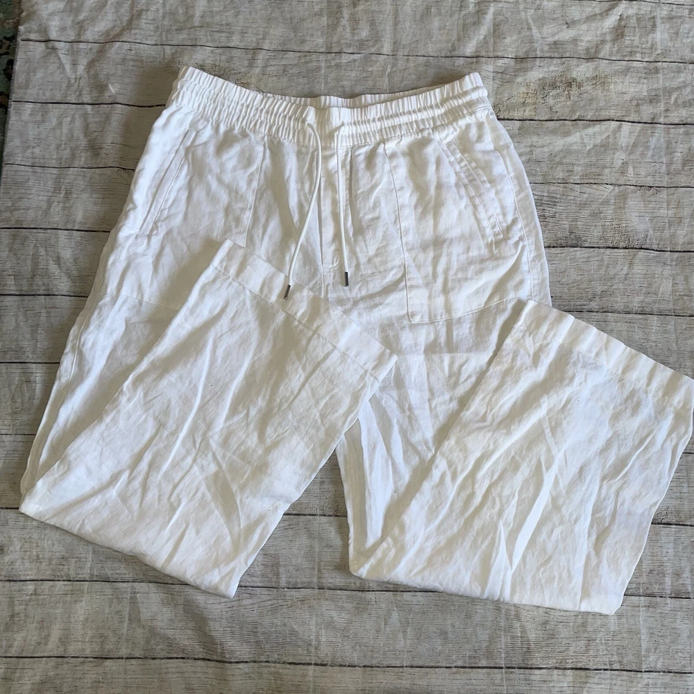 athleta white linen pants Size 12 Wide Leg Summer B12