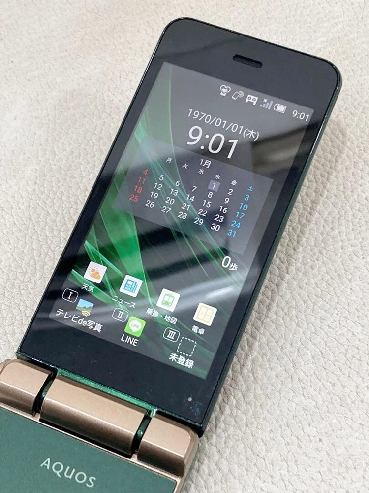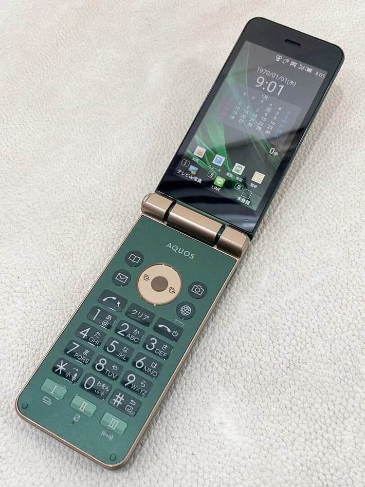 au AQUOS SHF34 Green flip phone Keitai ANDROID 4G SIM UNLOCKED SIM Free