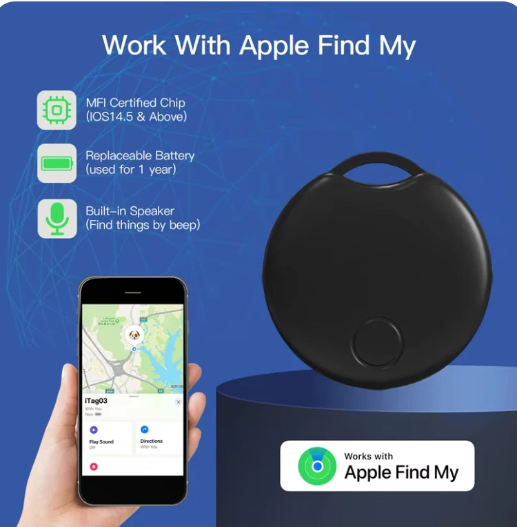 This Bluetooth GPS NFC tag tracker is the perfect accessory for your Apple device. It is designed to help you track your personal belongings with ease. The tracker comes in a sleek black color and can be easily attached to your keychain. With its compatibility for Apple devices and the Find My feature, you can easily locate your tracker and the items it is attached to. The tracker has a keychain mounting type and comes with 0 ports. It is ideal for those who want to keep track of their items without the hassle of constantly checking their device.