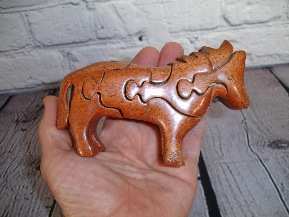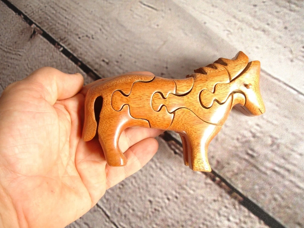 NEW (still in original wrapper)... Vintage quality handmade wood HORSE art puzzle from Vietnam (original price tag was about $55-$65)... last photo shows orig. price tag on one of my other similar puzzles where the tag never fell off the wrapper yet)... perfect for the vintage puzzle-collector or for developing motor skills & problem solving skills in children, etc... measures about 6" long x 3.5" tall. Several quality wood pieces & 1 one little "eyeball" wood peg to lock it all in place... Please include $4.95 domestic s/h. Thanks for stopping in... "For God so loved the world that He gave his one and only Son, that whoever believes in him, shall not perish but have eternal life" Jesus (John chapter three)