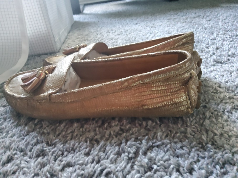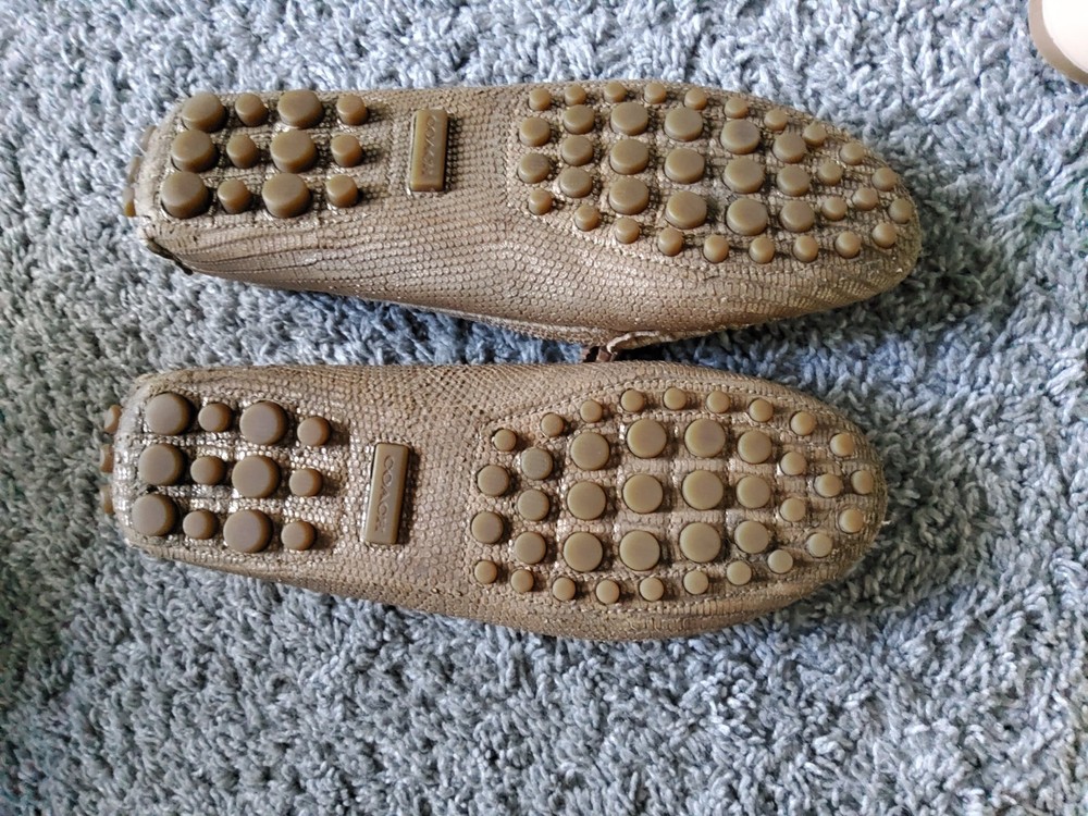 coach gold leather drivers mocassins women size 7B.cleaned and sanitized. No smell no stain,some signs of wear see photos. Feel free ask me any questions an extra photos. Pet free smoke free home.