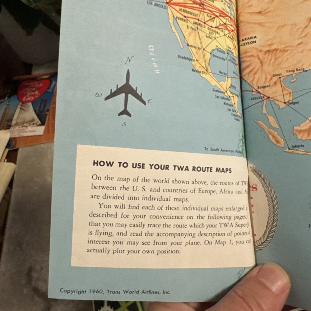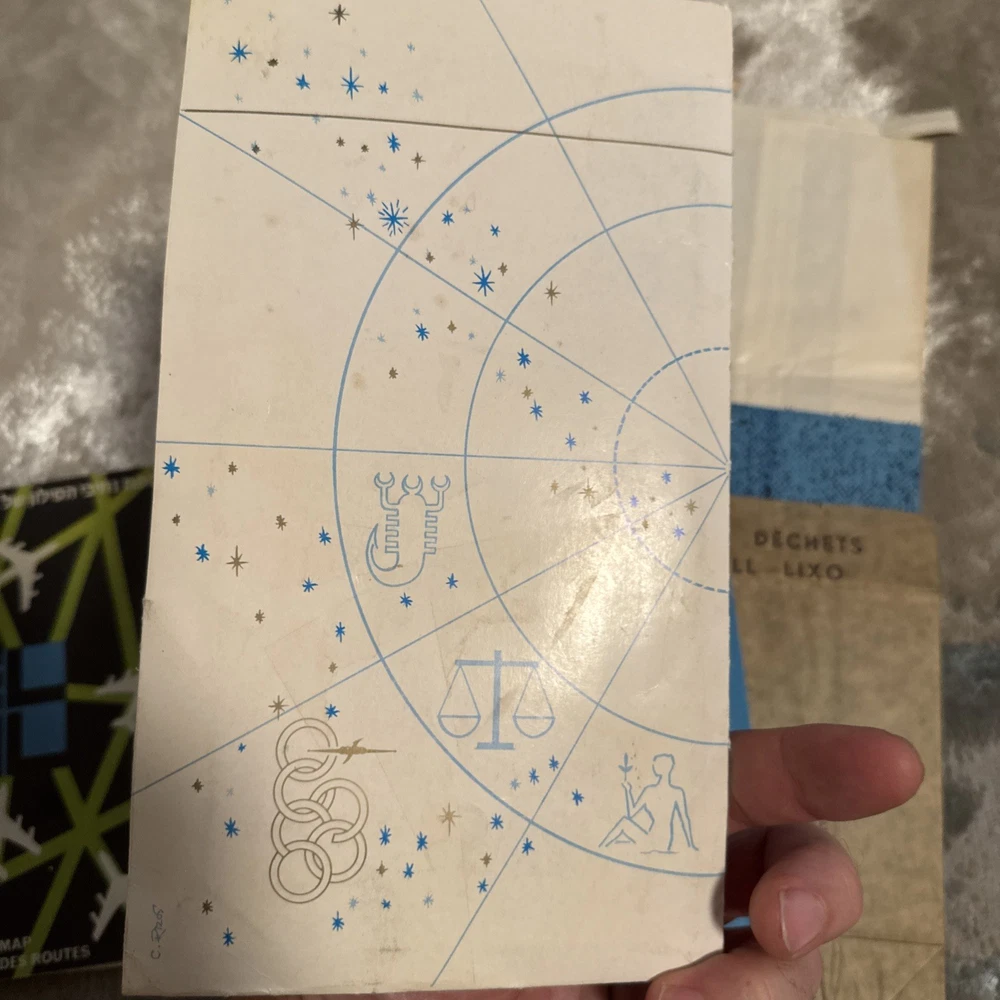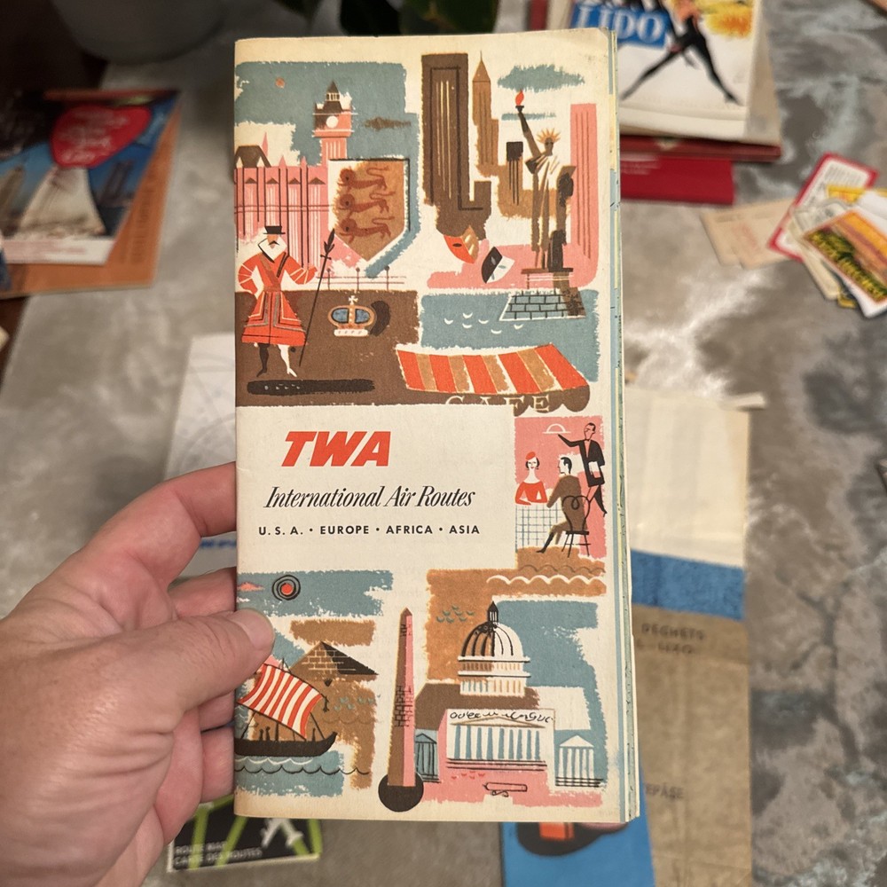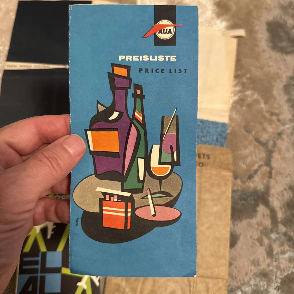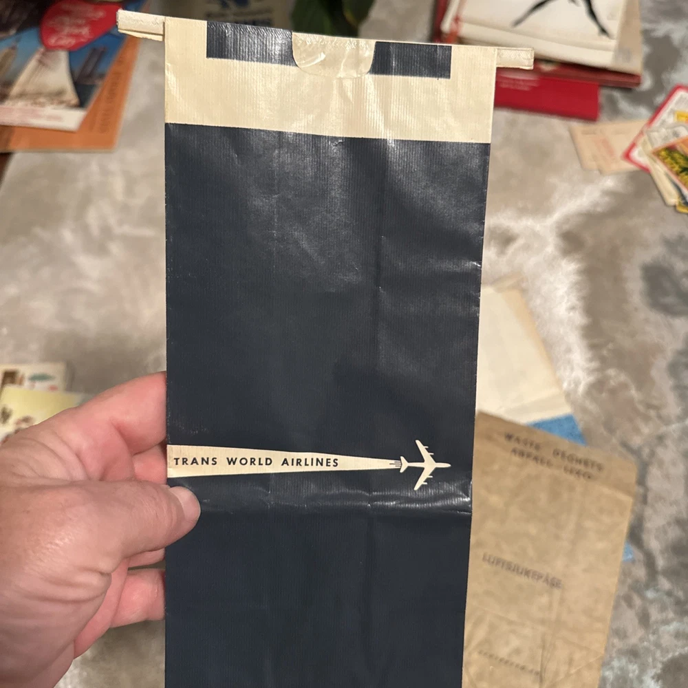 The product is a unique collection of vintage airline memorabilia, including maps, ticket jackets, and airsickness bags. These items offer a glimpse into the history and culture of air travel, providing a nostalgic look at the past. Perfect for aviation enthusiasts or collectors of vintage memorabilia, this assortment of airline-related items provides a tangible connection to a bygone era of travel.