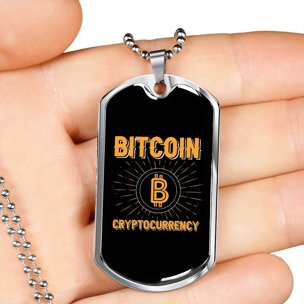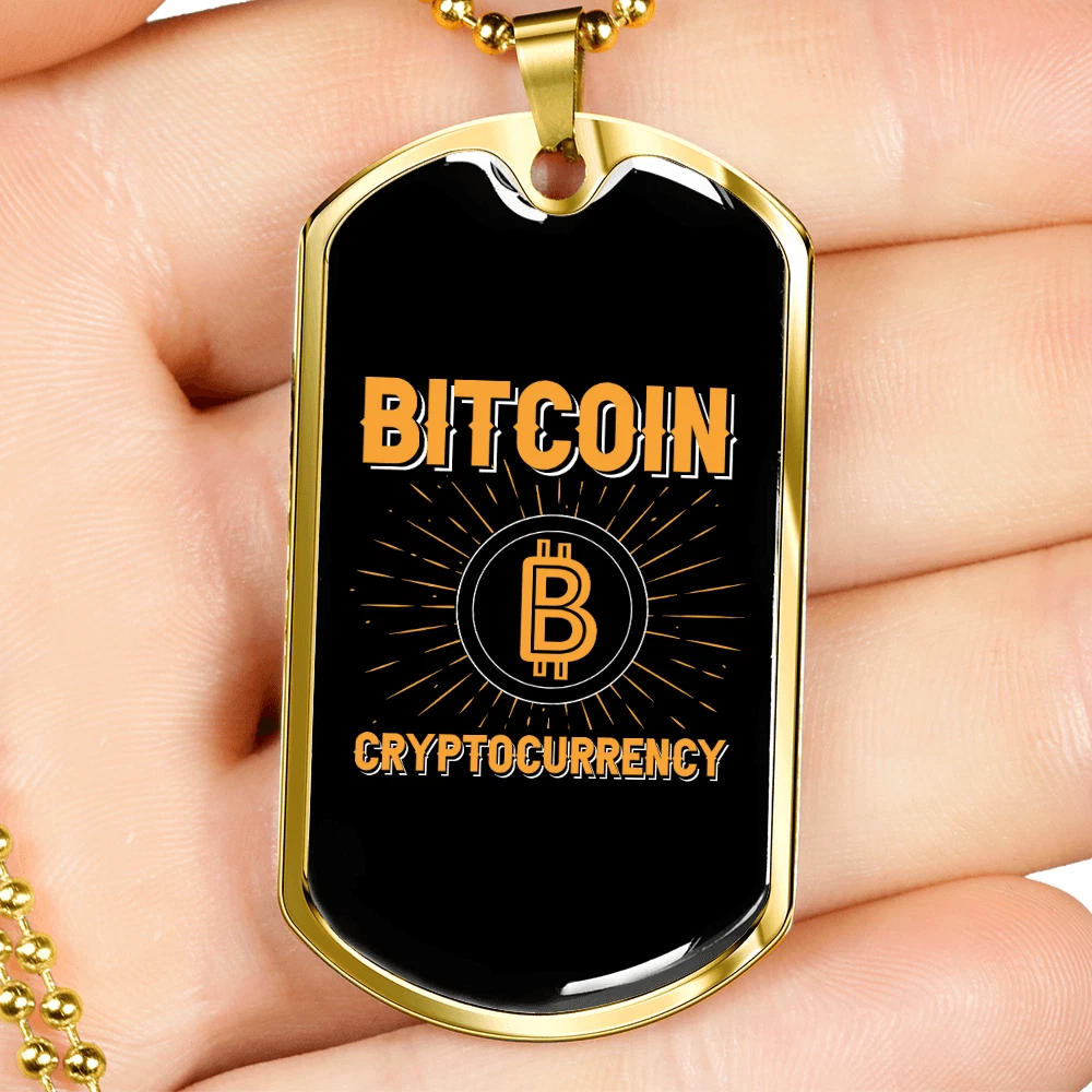 Closure: Lobster Clasp MPN: 6942996496472 Base Metal: Stainless Steel Pendant Shape: Dog Tag Country/Region of Manufacture: United States Type: Pendant Theme: Bitcoin, Crypto, Blockchain Material: Glass Chain Type: Ball Color: Multi Color Personalize: Yes Customized: Yes Pendant/Locket Type: Dog Tag Metal: Surgical Steel Features: Adjustable Brand: Express Your Love Gifts Necklace Length: 24" Main Stone: None