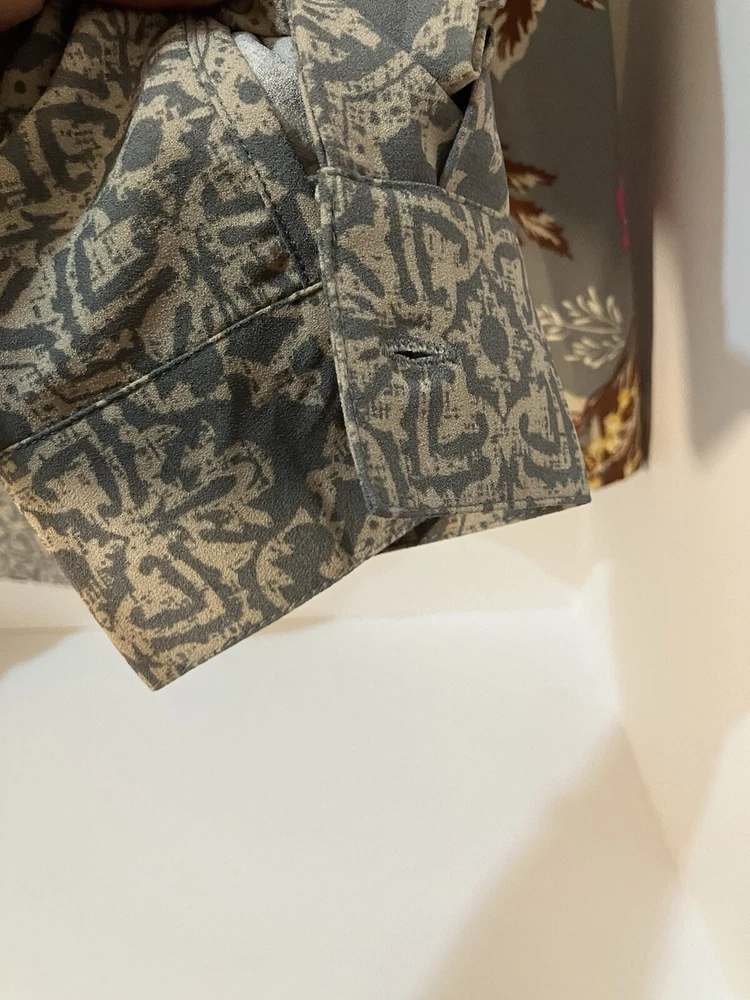 denim & company two pattern blouse front with gorgeous flowers and back has a fun classic geometric design v neck with 4 buttons pull over size M button sleeves 90% polyester 10%spandex Made in China machine wash cold separately gentle cycle, only non chlorine bleach when needed tumble dry low warm iron when needed lightly used but wholly loved!-- see photos for condition details, feel free to request additional photos if needed! **be sure to check out my other clothing listings for similar styles and sizes! many BNWT! any pre owned items may show normal signs of use-- if see any stains, rips, etc., I will do my best to provide photos. please do not hesitate to ask for more if needed! feel free to combine orders to save on shipping!