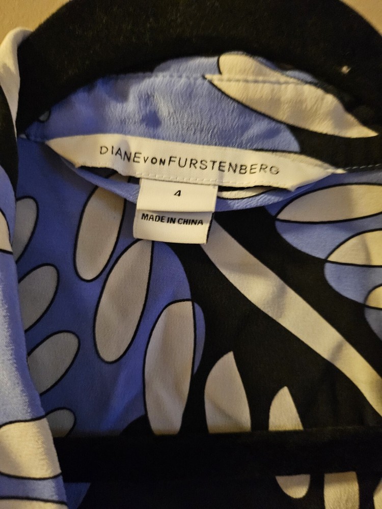 Elevate your wardrobe with this stunning Diane von Furstenberg silk shirt. The multicolor blouse is perfect for any occasion and is made with high-quality silk material. This regular-sized blouse is designed for women and is a must-have for any fashion-forward individual. The shirt is branded with Diane von Furstenberg's signature and is available in size 4. Add this exquisite blouse to your collection today and experience the luxury and elegance it brings.