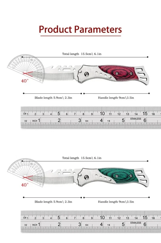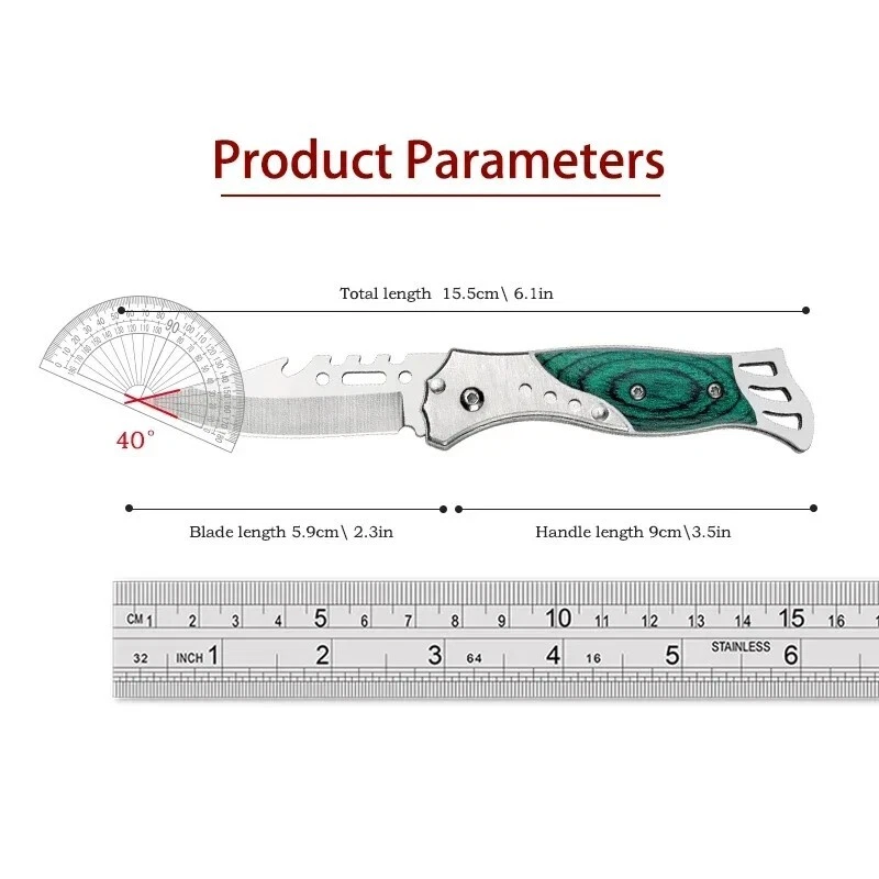 folding knife pocket knife Spring open Assist survival hunting tactical knife Specifications Hign-concerned Chemical none Spring Force no Lock no Sharp Blade YES Full Length 15.5cm Handle Length 9cm Blade Angle ≤60° Type Folding Blade Knife Origin Mainland China Blade Length 5.9cm Handle Material wood Brand Name LANG DUN Blade Material STAINLESS STEEL DIY Supplies Woodworking Specifications: Material: High-grade Stainless Steel Design and Style: Tactical, Survival-Oriented Usage and Purpose: Outdoor Camping, Hiking, Adventure, Self Defense, EDC Typical Adaptive Scenario: Wilderness Survival, Emergency Rescue Shape and Size: Compact, Foldable, Portable Performance and Property: Durable, Sharp, Corrosion-Resistant.