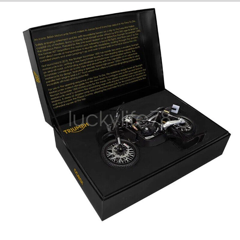 for CORGI FOR Triumph Scrambler 1200 (Matera) 1/12 DIECAST Truck Model Condition: New Scale: 1/12 Finished model. Ready to displayed. Material: DIECAST Size in CM: Length: 21 Width: 7 Size in INCHES: Length: 8.19 Width: 2.73 Please Note: This is NOT A KID’S TOY. ONLY SUITABLE FOR AGE 16+ Thank you so much for your business. Model is very fragile item. For quality control, we check every model before ship out.We will open the box to check the model. We have camera in the warehouse to monitor and record this process. If you do not agree with this process, please contact us before you place the order.Thank you.