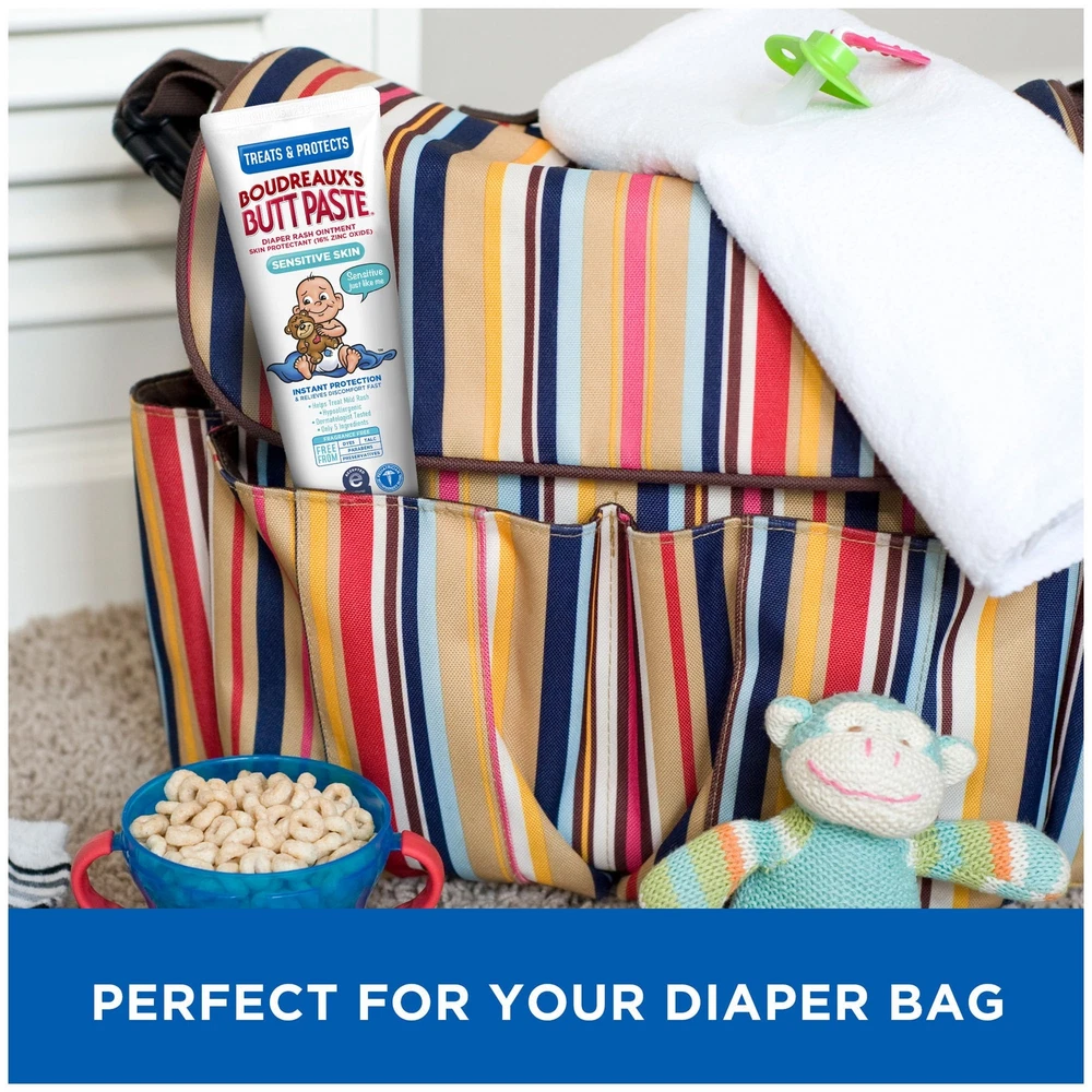 Developed by a pharmacist and father of four, Brand has been trusted for over 40 years by pediatricians and parents to help protect irritated skin due to diaper rash and to instantly seal out wetness. When used daily, it is also a great way to help prevent diaper rash. Sensitive Skin Diaper Rash Ointment is a thick, cream-like diaper rash ointment with 16% Zinc Oxide and is ideal for treating and preventing mild diaper rash. An effective and safe formula, Boudreaux’s Butt Paste Sensitive Skin is designed to be gentle on booties with sensitive skin. Sensitive Skin is formulated without fragrance, contains only five ingredients and is free from dyes, preservatives, parabens and talc. This product is recognized by the National Eczema Association. Don't forget to keep your baby’s butt protected and your hands mess free with our diaper rash cream and ointment brush applicator. Boudreaux’s Butt Paste has diaper ointments for any baby’s boo-tay needs including maximum strength, sensitive, natural* aloe, and butt barrier. products are FSA- and HSA-eligible in the US. *Other ingredients may not be natural. Natural refers to the source of listed ingredients and allows for only minimal, non-chemical processing of these ingredients. Specially formulated for baby’s sensitive skin to help provide fast relief from diaper rash discomfort and instantly protect irritated skin Dermatologist-tested and hypoallergenic diaper ointment recognized by the National Eczema Association Contains only five ingredients and is formulated without fragrance, dyes, parabens, preservatives; feels like a cream Ideal for daily prevention and treatment of mild diaper rash Pediatrician-recommended brand* for diaper rash ointment *ProVoice Survey February 1, 2021 to January 31, 2022 Contains 1 tube of for Sensitive Skin Diaper Rash Ointment for Baby, 4 oz FSA- and HSA-eligible product in the U.S.