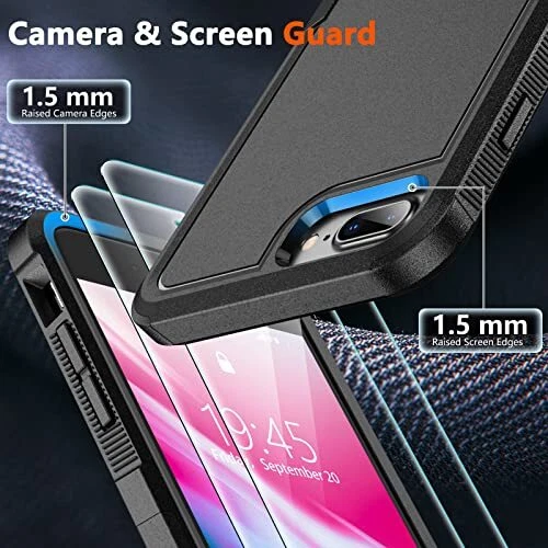 Return Policy Fast Delivery Trusted seller for iPhone 7/8 Plus Case, [10 FT Military Grade Drop Protection] [Non-Slip] [2 pcs Tempered Glass Screen Protector] Heavy Duty Full-Body Shockproof Case for iPhone 7/8 Plus 5.5”, Black Product Description 【Designed for】 designed iPhone 7/8 Plus case only designed for with iPhone 7/8 Plus 5.5 inch. Precise cutouts for easy access to all ports, buttons, sensors and cameras. Soft and sensitive buttons with good response, are easy to press. Wireless charging is also supported with the case. 【Thorough Camera & Screen Protection】 Raised lips protecting iPhone 7/8 Plus screen and camera thoroughly. 1.5mm raised lips over screen and 1.5mm raised lips over camera relieves impact and protects the phone screen and camera against drop damage, cracks and scratches. Reinforced corner effectively absorb bumps from any angle drop. 【Skin-friendly Material & Comfortable Grip】The unique ergonomic design provides a cozy grip of the phone. Anti-scratched and anti slip premium frosted material solved the problems of leaving fingerprints and marks. This case can totally achieve a great grip feeling also stay clean, no slip and anti-scratched. 【Full Protection】Passed Military Drop Tested up to 10 FT. 2-Layer structure provides 360°full body rugged protection. The iPhone 7/8 Plus case is made with flexible rubber inner cover and hard polycarbonate back cover, provides good shockproof and anti-drop damage protection. Plus 2 tempered glass screen protectors with high touch sensitivity prevent scratches and crack. 【What You Will Get】 You will get a Case for iPhone 7/8 Plus, 2 pcs tempered glass screen protector. If you have any issues, please contact us and we will reply in 24 hours. Shipping Returns Payment Shipping Shipping is FREE to all addresses other than APO/PO boxes in the lower 48 states. All our stock ships from US-based warehouses. Shipped via USPS or UPS (depending on location and package weight) Unless stated otherwise, all orders will ship within 24-72 hours of your payment being processed. Check our feedback to see the great reviews of FAST shipping we offer. Returns Seller does not accept returns Payment We currently accept payment via eBay managed payments only. Once payment is cleared, we will dispatch your shipment within 1-3 business days. Please refer to the "Shipping" tab for more information regarding shipping speed to your destination.