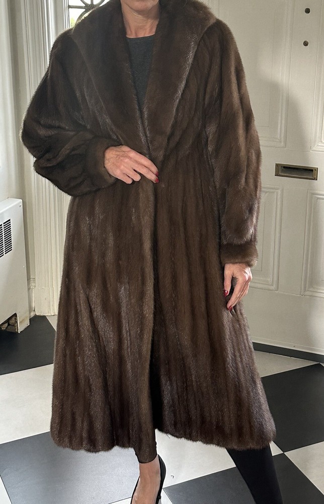 Indulge in luxurious style with this stunning full-length mink coat from Furs by Richard. It has been kept in meticulous condition