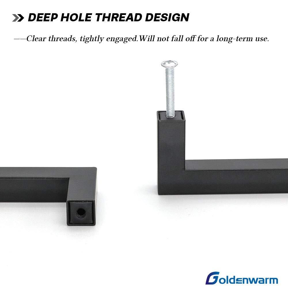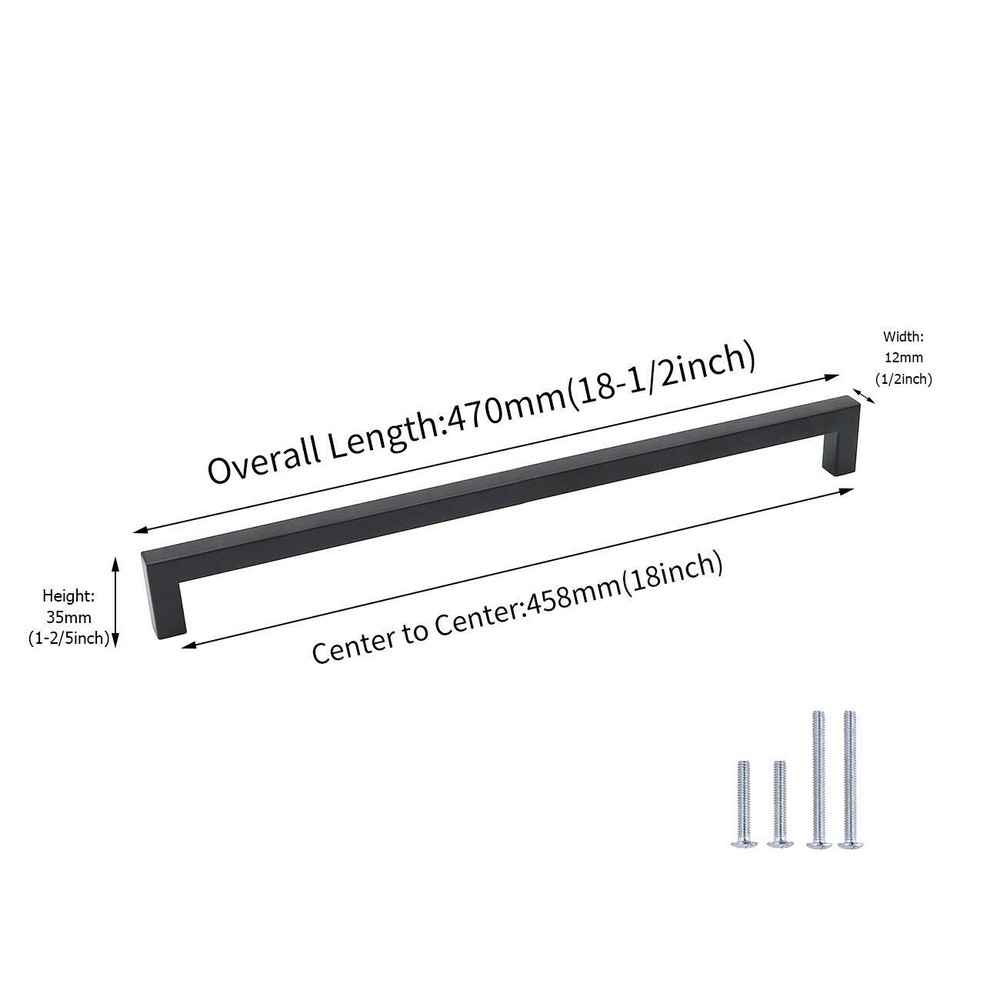 goldenwarm 5 Pack Black Cabinet Pulls 18 inch Drawer Pulls Kitchen Cabinet Handles Black Dresser Stainless Steel Modern Hardware MATERIAL:Black cabinet handles made of high quality Stainless Steel,they are hollow construction,lightweight but durable and anti-corrosive,can be used for many years. MEASUREMENT:Hole centers:458mm(18inch),Overall length:470mm(18-1/2inch),Width:12mm(1/2in),Thickness:12mm(1/2in).Please measure your cabinet HOLE CENTERS carefully and then decide which size is what you need. TOP QUALITY&REASONABLE PRICE:Our black pulls have smooth surface,that makes you feel comfortable in using, you don't have to worry about being scratched. use these our goldenwarm hardware to decorate your cabinets or update some old furniture,bring you a modern look.Very stylish and unique. PERFECT SERVICE: We will patiently answer you if you have any questions. If you are not satisfied with our item, please contact us and we would help you solve it better.Don't hesitate.Just buy it. PACKAGE INCLUDE:Pack of 5 black pulls with matched standard screws(1 inch & 1.57 inch).You can select the right size according to the thicknesses of the cabinet.Every pull is individually wrapped and bagged to protect the beautiful color Shipping We offer FREE shipping on all orders! We use a selection of shipping services such as UPS, FedEx, USPS etc. We only ship to the lower 48 states, no APO/FPO addresses or PO Boxes allowed. Local pickups and combined shipping options are not provided at this time. Return You can return a product for up to 30 days from the date you purchased it. Any product you return must be in the same condition you received it and in the original packaging. Please keep the receipt. Payment We accept payment by any of the following methods: PayPal Please pay as soon as possible after winning an auction, as that will allow us to post your item to you sooner! Feedback Customer satisfaction is very important to us. If you have any problem with your order, please contact us and we will do our best to make you satisfied. Contact Us If you have any queries, please contact us via ebay. We usually respond within 24 hours on weekdays. Please visit our eBay store to check out other items for sale! Thank you for shopping at our store.
