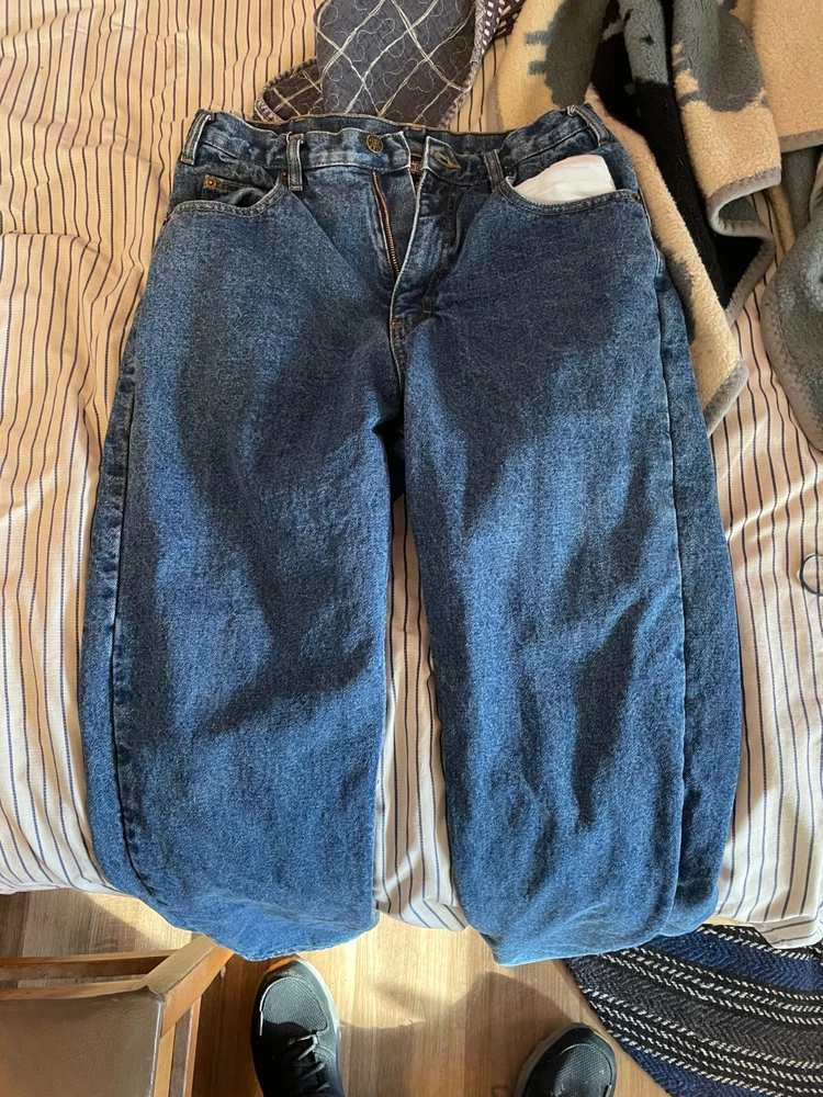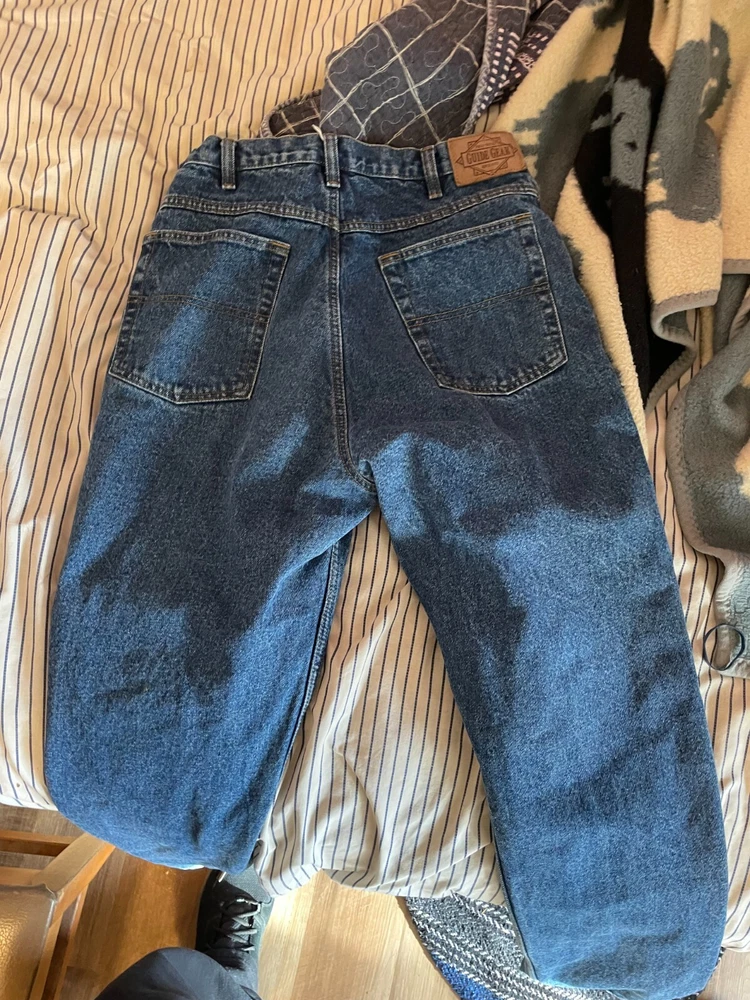 never won, insulated blue jeans, 100% cotton inside. perfect pants.Guide Gear brand size 8