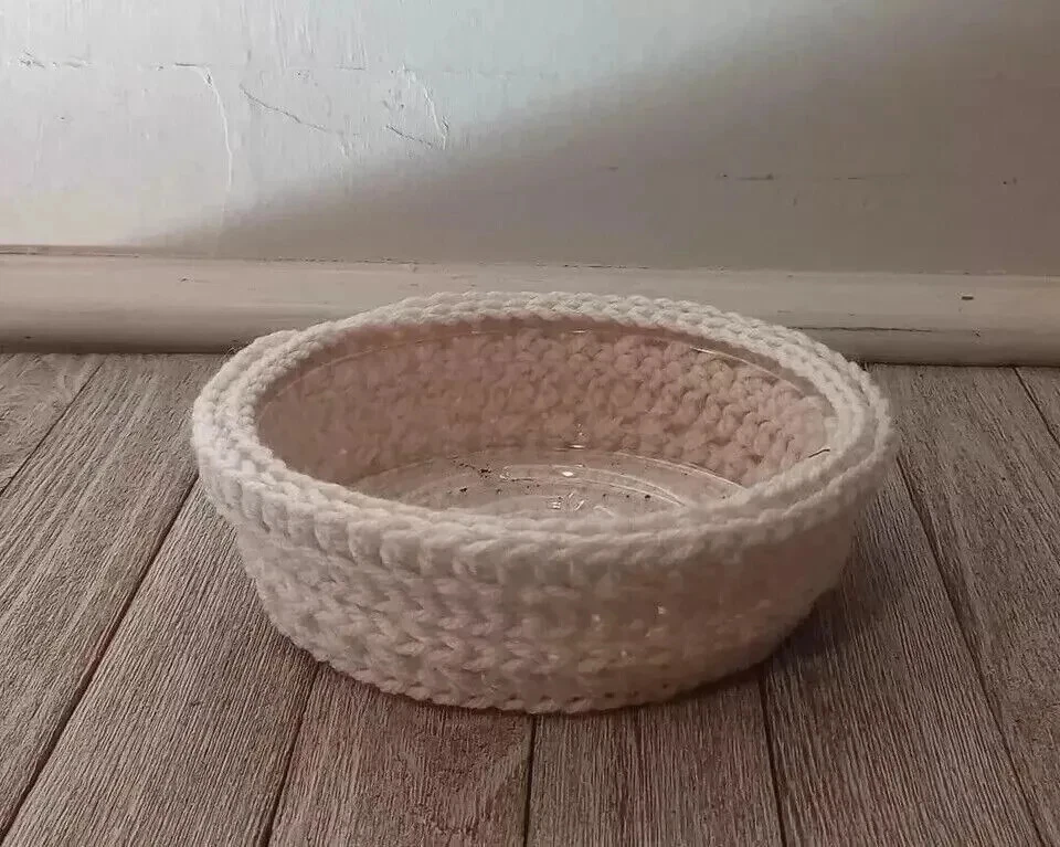 handmade boho crochet plant dish saucer cover aran cream white 6 inch set
