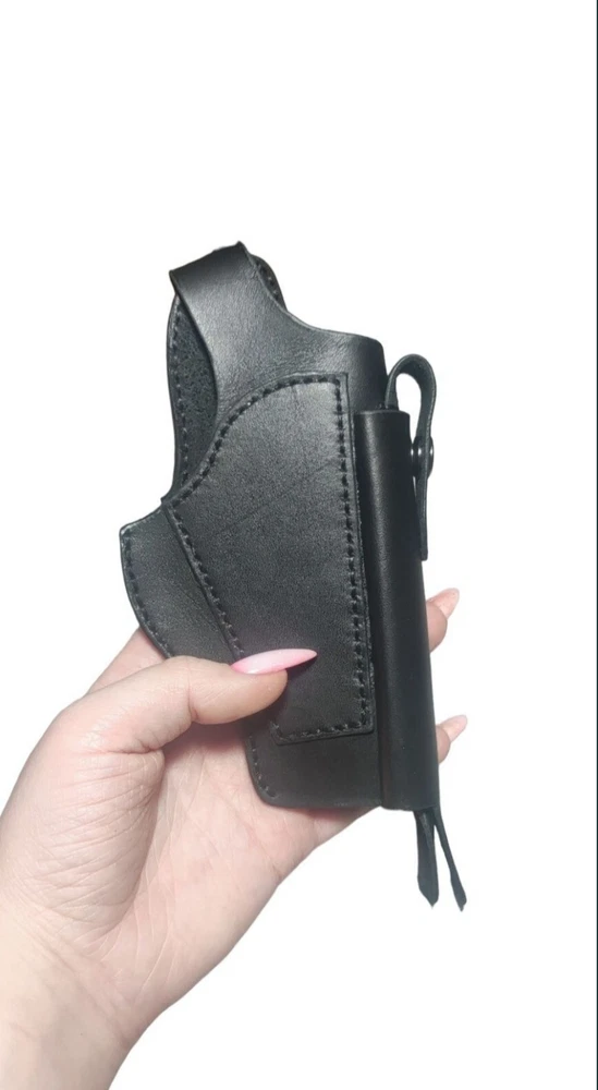 Introducing our premium Leather Holster – the perfect combination of craftsmanship, durability, and comfort for those who demand quality. Made from high-grade, genuine leather, this holster is designed to securely carry your firearm while providing easy access when needed. The leather construction ensures both strength and flexibility, offering a snug fit that molds to the shape of your body over time, creating a personalized, comfortable experience. Our leather holster features a sleek, functional design, crafted for convenience and practicality. With precise stitching and reinforced edges, it guarantees long-lasting use and reliability. The holster’s classic appearance exudes a timeless, rugged style, making it a must-have accessory for firearm owners. Whether you're a seasoned professional or a responsible gun owner, this holster provides secure and safe carrying for your firearm while offering maximum comfort. Ideal for concealed carry or open carry, it is versatile enough for both daily use and tactical situations. Key Features: Made from high-quality, genuine leather Secure, snug fit that molds to your body over time Durable and built to withstand daily wear Classic, stylish design for a rugged yet refined look Ideal for concealed or open carry Easy access for quick, reliable draw Enhance your gear with our leather holster – the perfect blend of style, function, and durability for responsible firearm ownership.