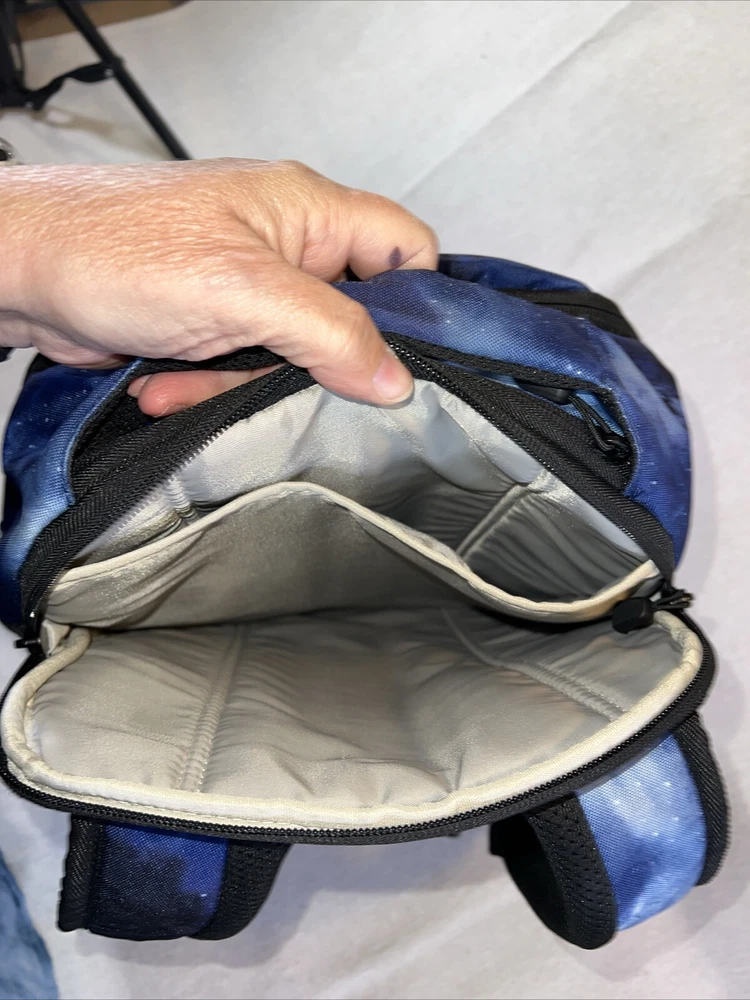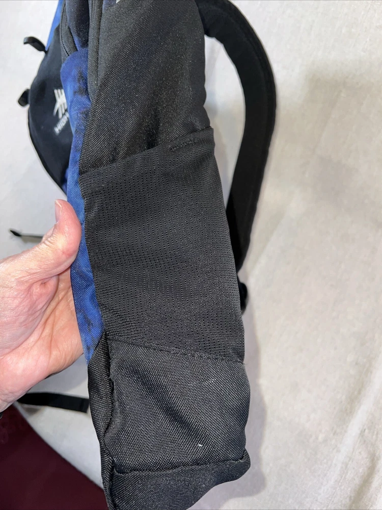 This High Sierra backpack in blue is perfect for your next backpacking or hiking adventure. With a zip closure, external and elastic pockets, and padded straps, this backpack is both convenient and comfortable to wear. It also features a water-resistant design to keep your belongings dry in case of any weather conditions. The backpack's capacity is unspecified, but it has plenty of room for all your essentials. The blue color adds a pop of style to your outfit, and the harness ensures that the backpack stays securely on your shoulder. Whether you're a seasoned hiker or just starting out, this High Sierra backpack is a great choice for your next outdoor trip. In good condition.