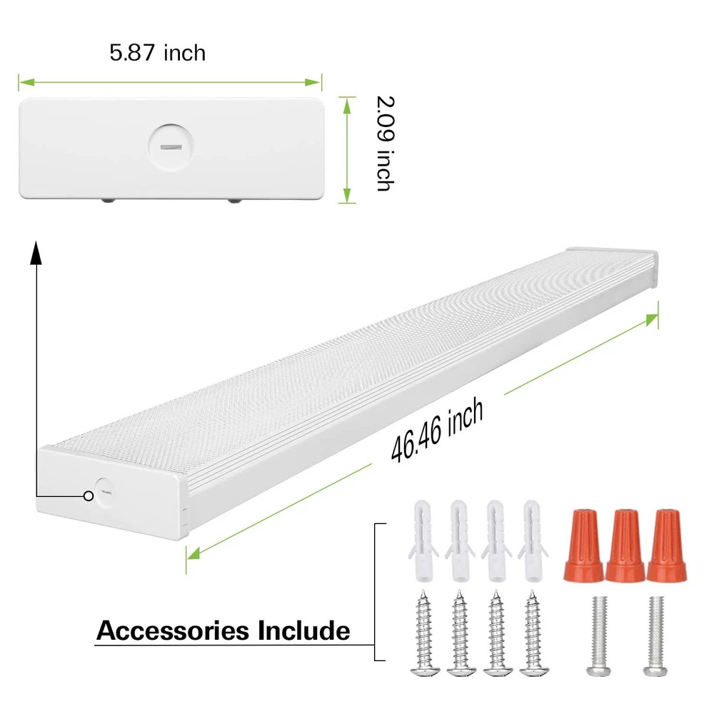 UP to 75% ENERGY SAVING - Hykolity's 4FT 40W LED Wraparound light at 4000K Neutral White provides over 4400lm,which makes the perfect replacement for traditional 2 lamp 32W fluorescent wrap light fixture and cuts down the electric bill up to 65% instantly UNIQUE DESIGN - Designed with an impact resistant-prismatic acrylic lens to maximize light output and distribution, this wraparound light fixture uses ultra-efficient LED technology to help lower energy usage and costs, eliminates the need for bulb replacements QUICK&EASY INSTALLATION- The LED wrap light is easily flush mounted to the wall or ceiling with the mounting accessories(included). NO BALLAST TO EVER REPLACE WIDE APPLICATION -The 4ft led shop lights are perfect for use in garage, office, workshop,workbench, kitchen, basement, closet, storage rooms, warehouse, hallways and so on SAFETY - ETL certified for better quality, safety and reliability