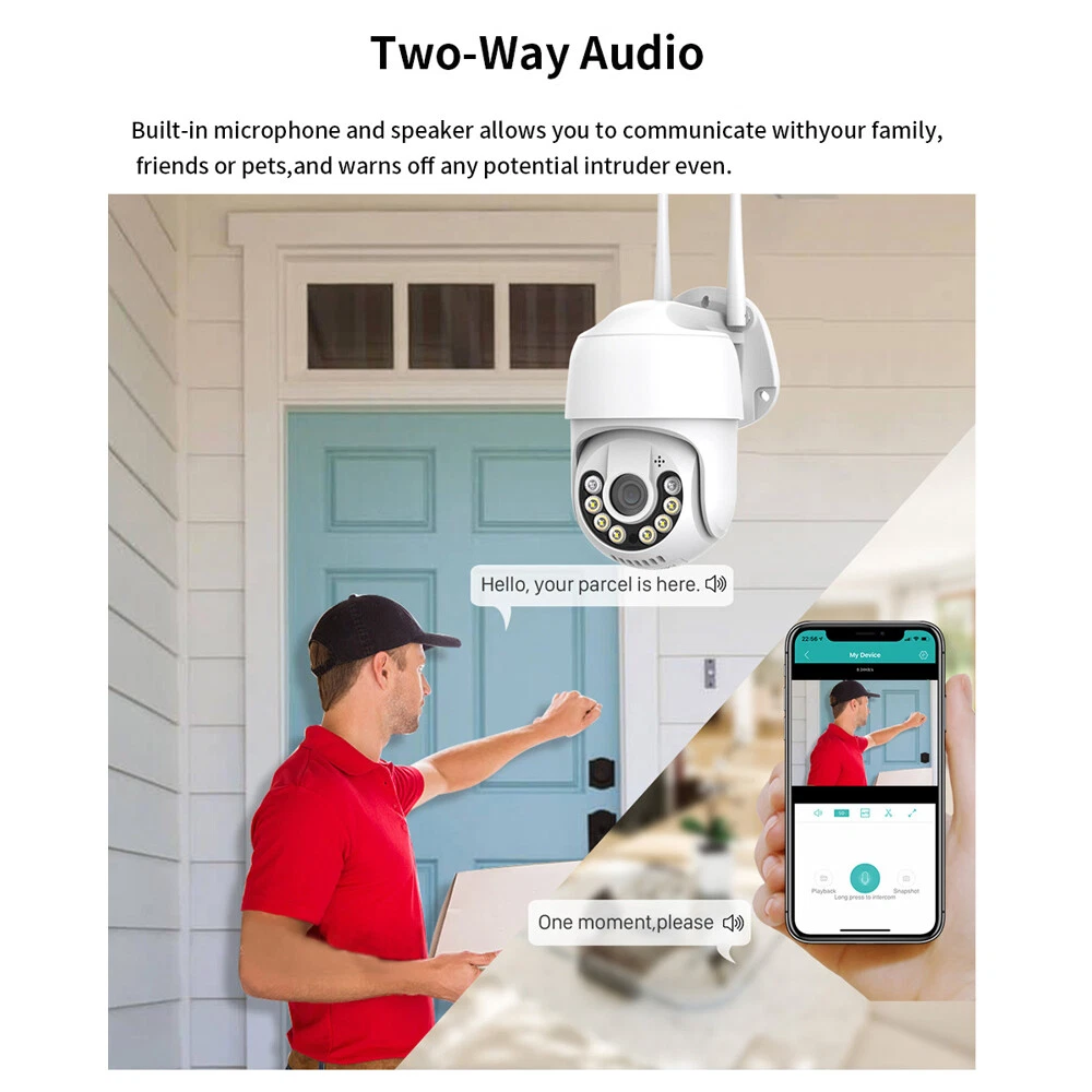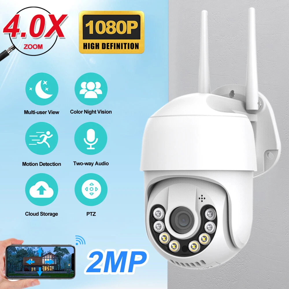 2MP PTZ 4X Digital Zoom Night Vision WIFI Camera Audio CCTV Surveillance Feature: 1. CMOS, DC 12V ,Waterproof IP66 2. , IR 30m distance. Lens 3.6 mm,4 pcs white lights +4 pcs IR lights(new one :2 White lights +2 IR Lights+ 4 double ligthts function) 3.Outdoor Use 4. Wi-Fi/802.11/b/g/n . 5. Motion detection 6.Iphone, Android Smartphone supported 7. Color: White. 8.P2P, PNP: Plug&play Resolution:1920*1080 AudioInput / Output:Build-in Audio / Microphone (Two Way Audio) Day & Night Switch:Double IR Cut Filter With Auto Switch Lens size:3.6mm IR Distance:Up to 30m (Depends on the Enviroment & Lens)(4 pcs white lights +4 pcs IR lights),when turn on white lights,it is colorful night vision PTZ:Horizontal 300 Degree, Vertical 90 Degree Support TF Card:Max Up to 128GB TF Card (NOT included) Network:Wi-Fi/802.11/b/g(Only Support 2.4Ghz Wifi) Motion Detection:Support Cloud Storage:Support Power Supply:DC 12V MaterialABS Plastic, outdoor Use APP:iCsee Packing list 1x Wireless IP Camera 1x Power Supply 1x Instructions 1x Screws Payment Delivery details About Taxes About us Contact us Payment Payment is managed by eBay. We will ship to your eBay address. Please make sure your address setting is correct before checkout. Delivery details WORLDWIDE SHIPPING. (Except some countries and APO/FPO) Orders processed timely after the payment verification. The images shown are not the actual item and are for your reference only. SERVICE TRANSIT TIME is provided by the carrier and excludes weekends and holidays. Transit times may vary, particularly during the holiday season. About Taxes For all orders, please note that: Taxes and charges are not included in the item price or shipping charges. Please check with your country's customs office to determine what these additional costs will be prior to bidding/buying. About us We are committed to provide excellent service for all buyers. Welcome to our eBay store:) Contact us Our Working Time (Beijing): 9:00 am ~ 6:00 pm (Monday~Friday) If the item is defective or taking longer than usual to reach you, please do not leave us negative feedback. Send us a message through eBay and we will resolve the issue promptly. Thanks for your support and understanding! If you have any questions, please contact us via ebay mail, we will reply you on the working day in China. And there will be no reply as we are out of office during weekend, we will reply on Monday. Because the time zone between the seller and the buyer is different, please be patient and wait for your understanding. We will be happy to serve you.