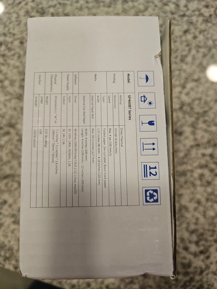 Used, but like brand new. The NEW iDPRT Bluetooth Thermal Label Printer SP460BT is a medium-sized label printer with a sleek dark black color and Bluetooth connectivity. It has a compact package dimensions of 10.71x6.3x6.1 inches and weighs 3.9 pounds, making it easy to transport and use in various settings. The thermal technology allows for quick and efficient printing of 4x6 shipping labels, making it ideal for businesses and individual users who need to label and ship items frequently. The BT brand is known for its quality and reliability, ensuring that this printer is a valuable addition to any workspace.