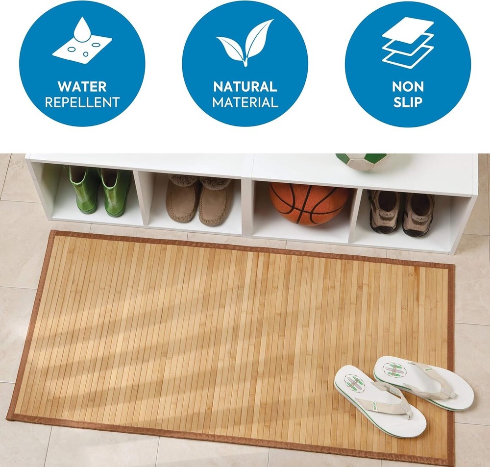 iDesign Formbu Bamboo Mat Rug Runner for Bathroom, Kitchen, Entryway, Hallway, O BAMBOO FLOOR MAT – Elevate your home for functional beauty with the iDesign natural bamboo rug and floor mat; water-resistant with a non-skid underside, the natural rug is ideal for a bathroom, mudroom, kitchen, entryway, hallways, and more WATER-RESISTANT – Great as a bathroom runner or hallway runner rug, it’s made of natural bamboo with water-resistant coating and a fabric border; bamboo bathroom mat has a non-skid underside to protect wood, carpet, or tile floors from damage STYLISH – Bamboo décor like this small rug can elevate your home with its modern, natural style; wood runner rugs complement any style home décor and make a great addition to any home IDEAL SIZE – Bamboo floor rug measures 34" x 21", perfect for any living space; use in bathrooms, entryways, kitchens, mudrooms, offices, and more IDESIGN – iDesign offers innovative storage products at a reasonable price; we’re a global leader in housewares with a mission to make every day easier with innovative products designed to help people organize and enhance their homes with style Shipping We offer FREE shipping on all orders! We ship within Three business days of payment, usually sooner. We use a selection of shipping services such as UPS, FedEx, USPS etc. We only ship to the lower 48 states, no APO/FPO addresses or PO Boxes allowed. Local pickups and combined shipping options are not provided at this time. Return You can return a product for up to 30 days from the date you purchased it. Any product you return must be in the same condition you received it and in the original packaging. Please keep the receipt. Payment We accept payment by any of the following methods: PayPal Please pay as soon as possible after winning an auction, as that will allow us to post your item to you sooner! Feedback Customer satisfaction is very important to us. If you have any problem with your order, please contact us and we will do our best to make you satisfied. Contact Us If you have any queries, please contact us via ebay. We usually respond within 24 hours on weekdays. Please visit our eBay store to check out other items for sale! Thank you for shopping at our store.