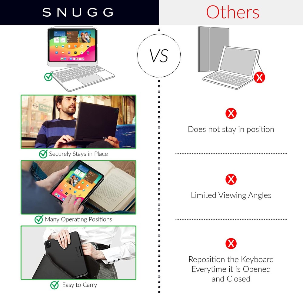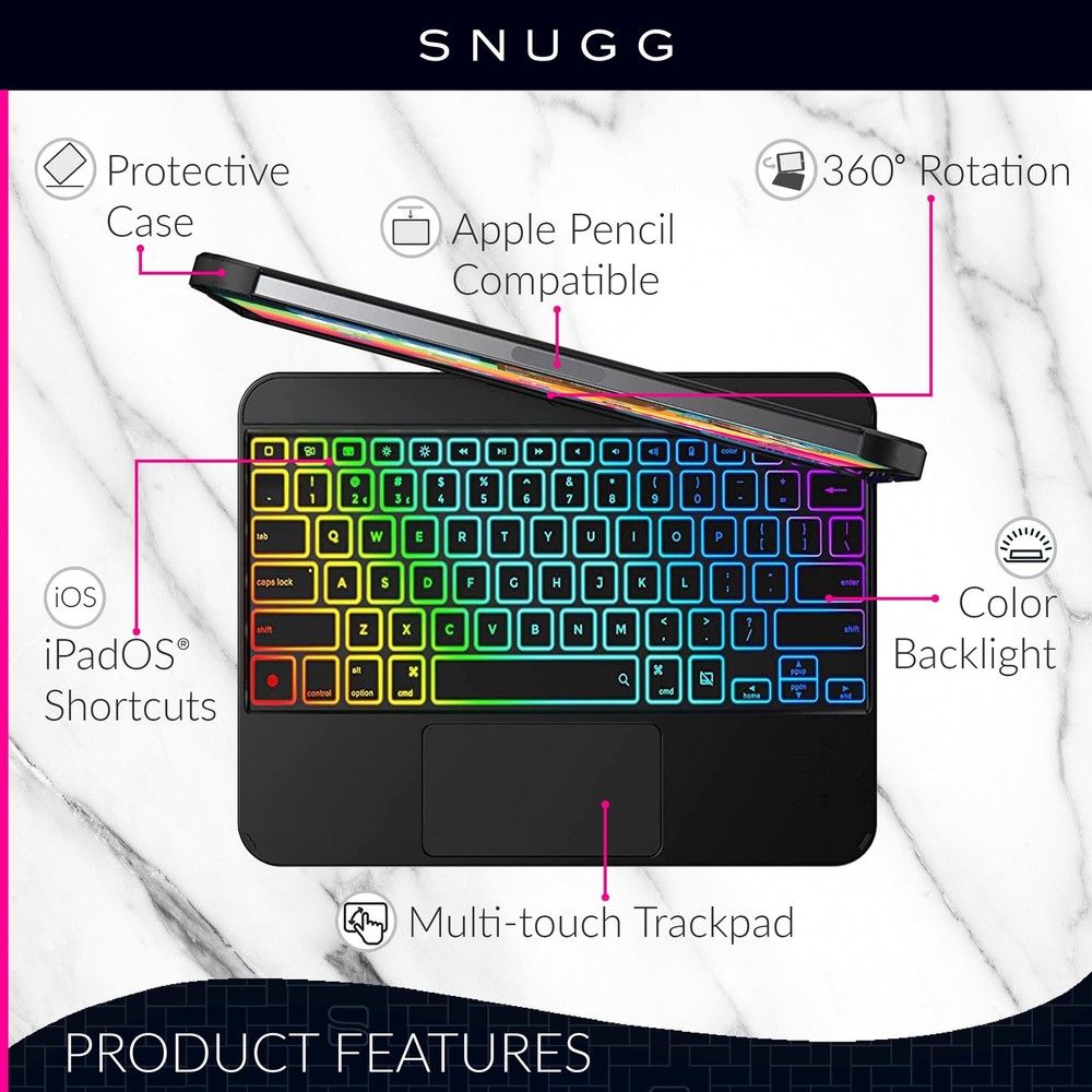 Fully compatible with iPad Air 11 Inch Keyboard, iPad Not Included This Thing Fits Perfectly! Over 11 years of creating cases, we know what works and what you need in an apple Keyboard for iPad Air Make Typing a Breeze - Whether its writing an essay, email or Instagram post, this iPad Air 11 Inch Case with Keyboard makes life easy by providing a typing position just like you have on a Macbook or Laptop Who Says Work and Style can't Go Together? - This iPad Air M2 Keyboard with backlit keys is a work powerhouse that also keeps you looking the part with your iPad Air 11 Inch Keyboard Case! Guarantee - This Wireless apple iPad Air 11 Inch Case with Keyboard 2024 comes with our Guarantee which means if you have any problems with it, just contact us and we will send a new Keyboard for iPad Air 11 Inch with Keyboard out to you