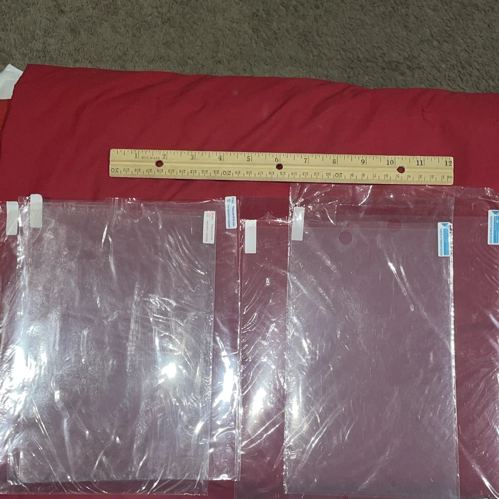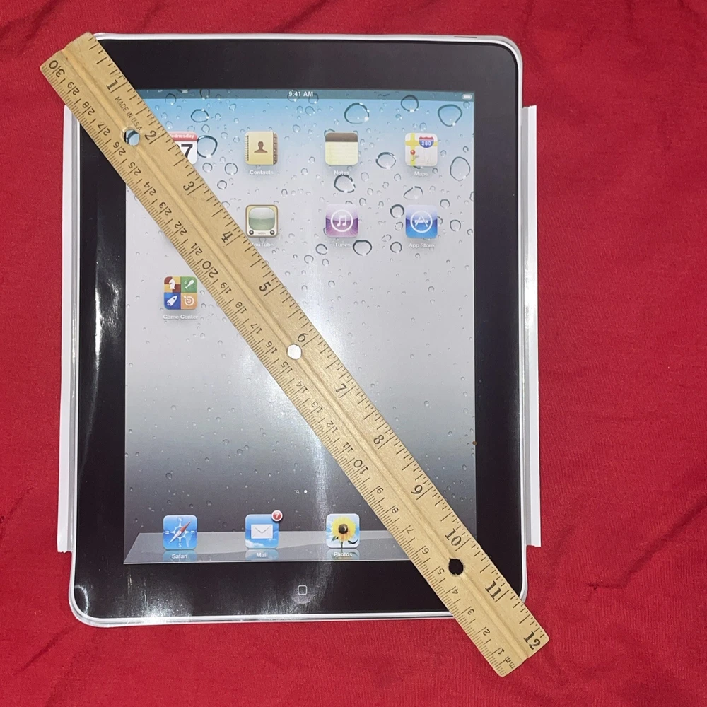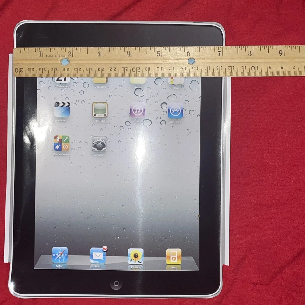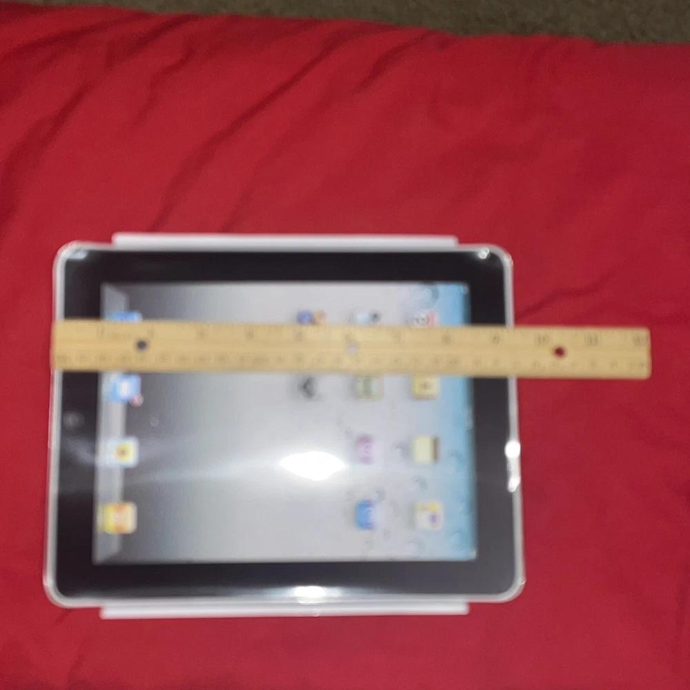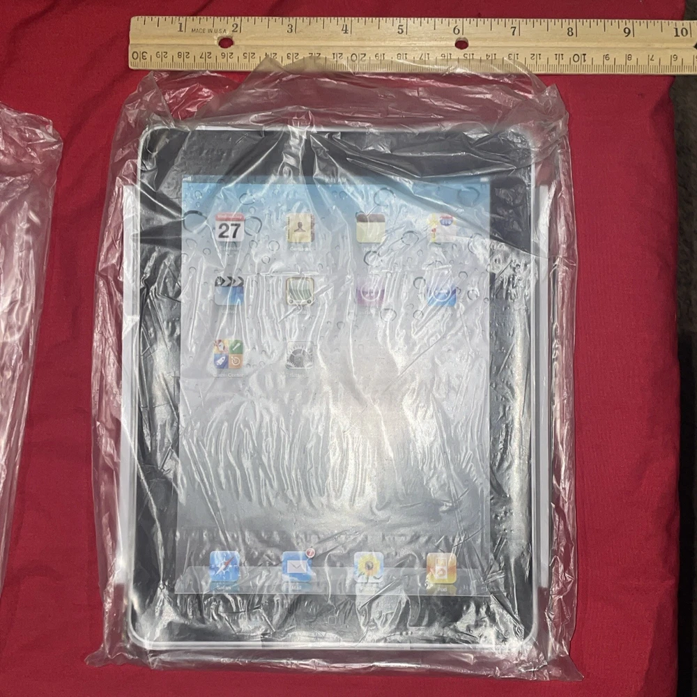 Approximate Dimensions Width - 7.25 inches Length - 9.40inches Diagonal- 11.35 inches Includes 1 black & red soft travel case, 2 clear hard plastic cases & 4 new screen protectors. These are all unused and still packaged. It came with an older generation iPad. The product is an iPad screen protector and travel case designed for early generation iPads. It includes both hard and soft cases to protect the device during travel. The screen protector helps to prevent scratches and smudges on the iPad screen, while the travel case offers additional protection for the device while on the go. Specifically designed for Apple products, this smart cover/screen cover combination is ideal for users looking to keep their iPad safe and secure during transport.